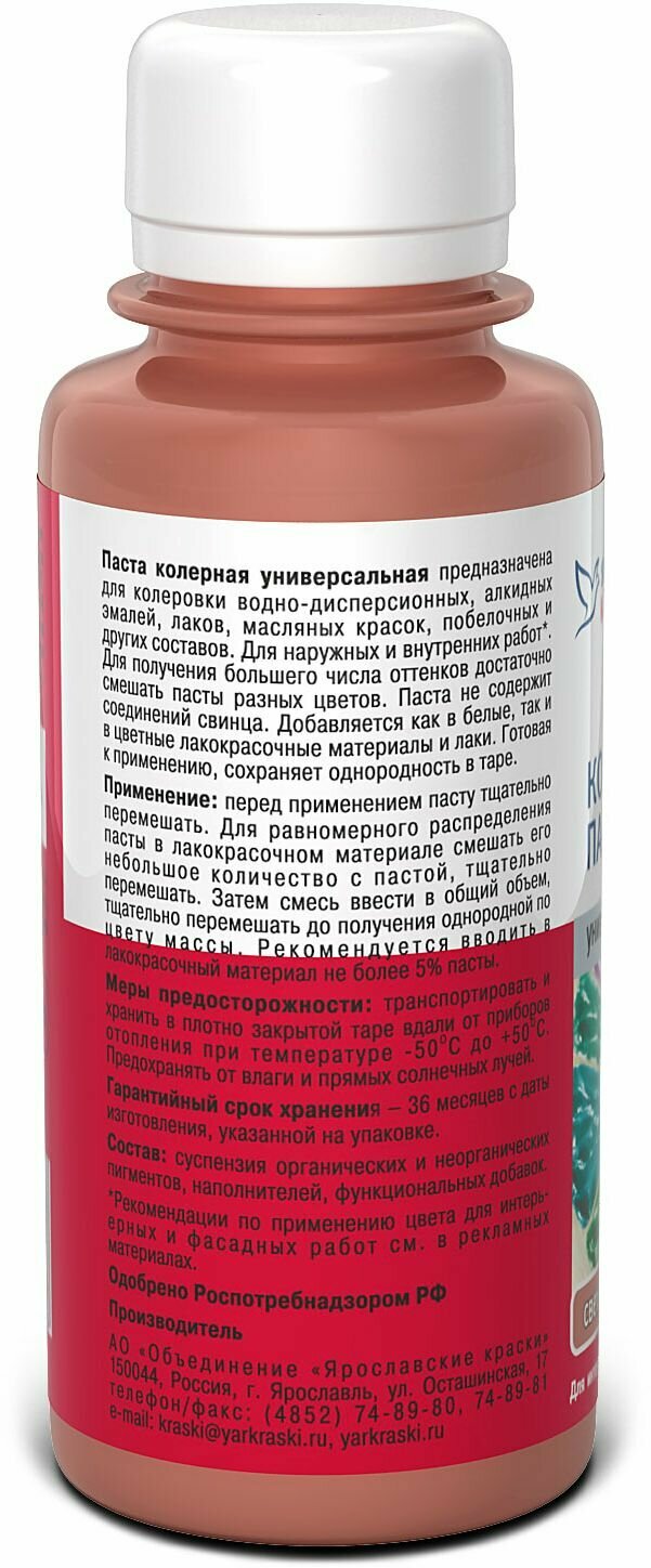 Паста колерная универсальная Ярославские краски розовый бутылка 0,1 л 99 ₽