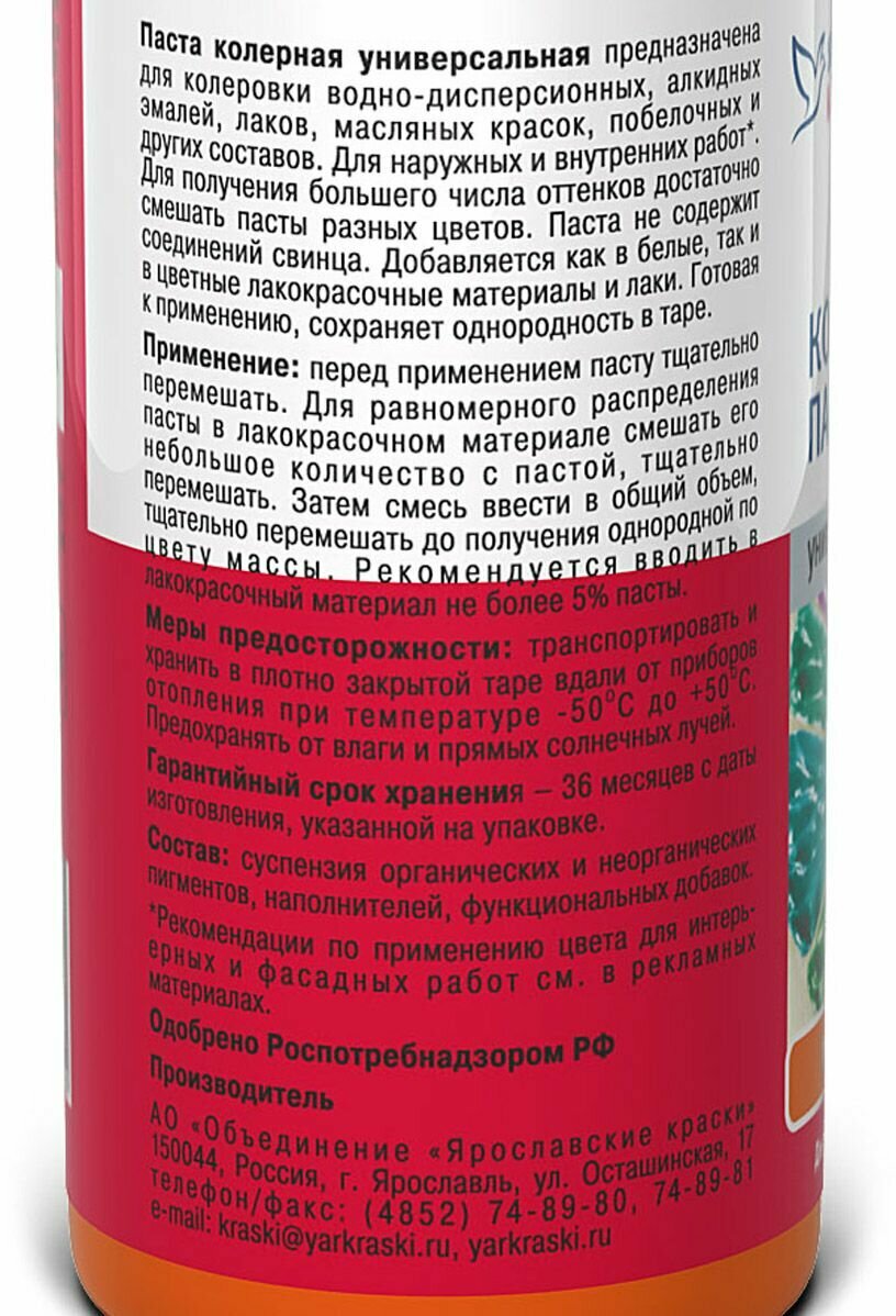 Ярославские краски паста колерная универсальная, персиковая 0,1л информация: