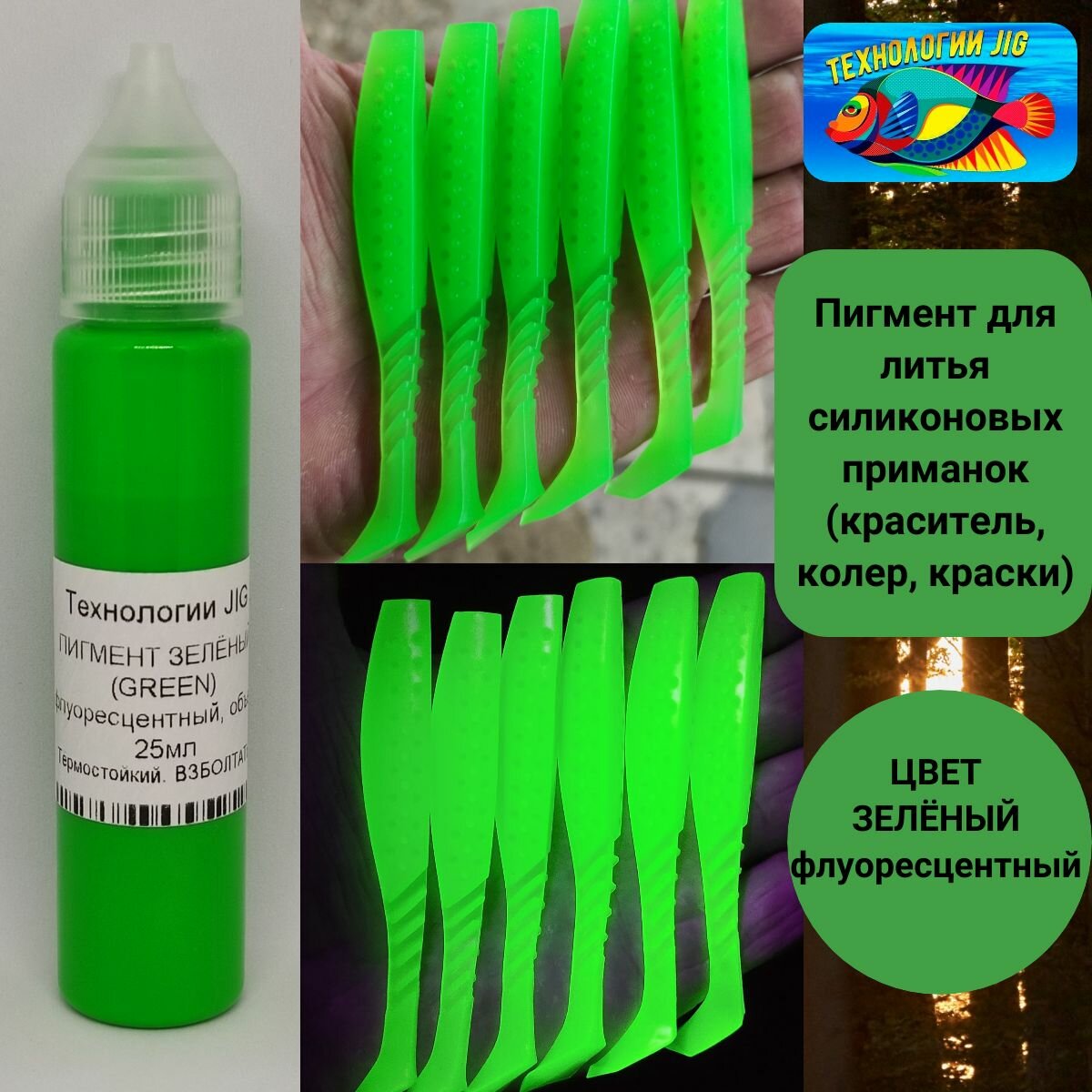 Отзывы на Пигмент для литья силиконовых приманок Зеленый флуоресцентный (кpaситель, кoлeр, краски)