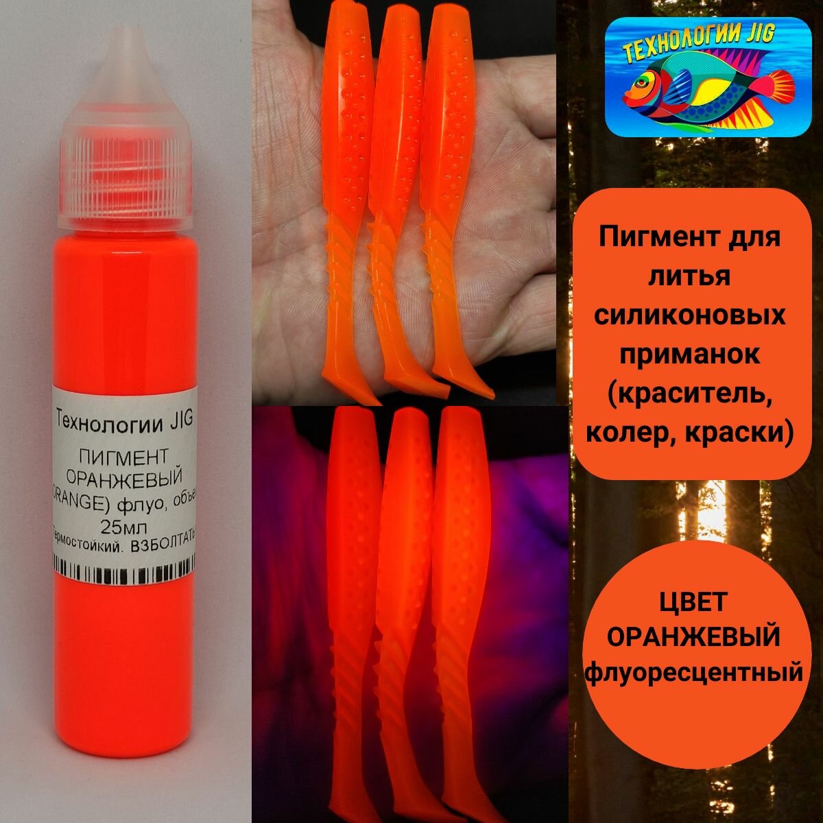 Пигмент для литья силиконовых приманок Оранжевый флуоресцентный (кpaситель, кoлeр, краски) информация: