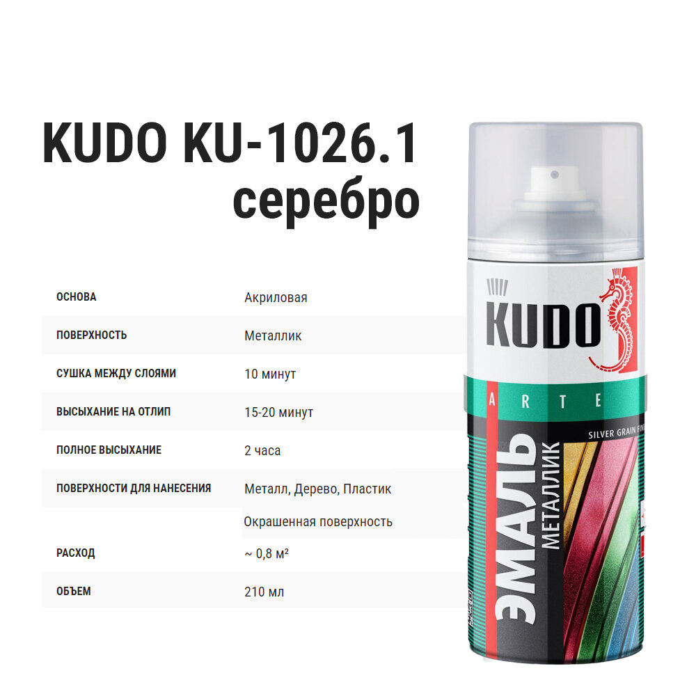 Краска эмаль универсальная металлик KUDO KU-1026.1 серебряная информация: