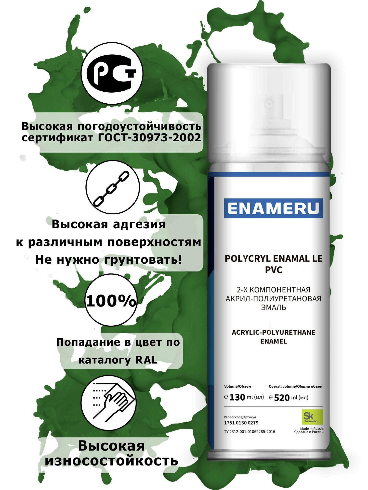 Структурная краска для ПВХ, пластика, окон Энамеру, Быстросохнущая, Акрил-полиуретановая, Полуматовая, 0.52 л, Папоротниковый зеленый RAL 6025 информация: