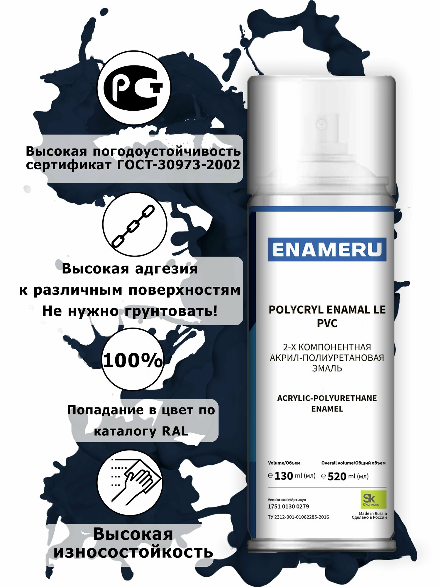 Структурная краска для ПВХ, пластика, окон Энамеру, Быстросохнущая, Акрил-полиуретановая, Полуматовая, 0.52 л, Стальной синий RAL 5011 информация: