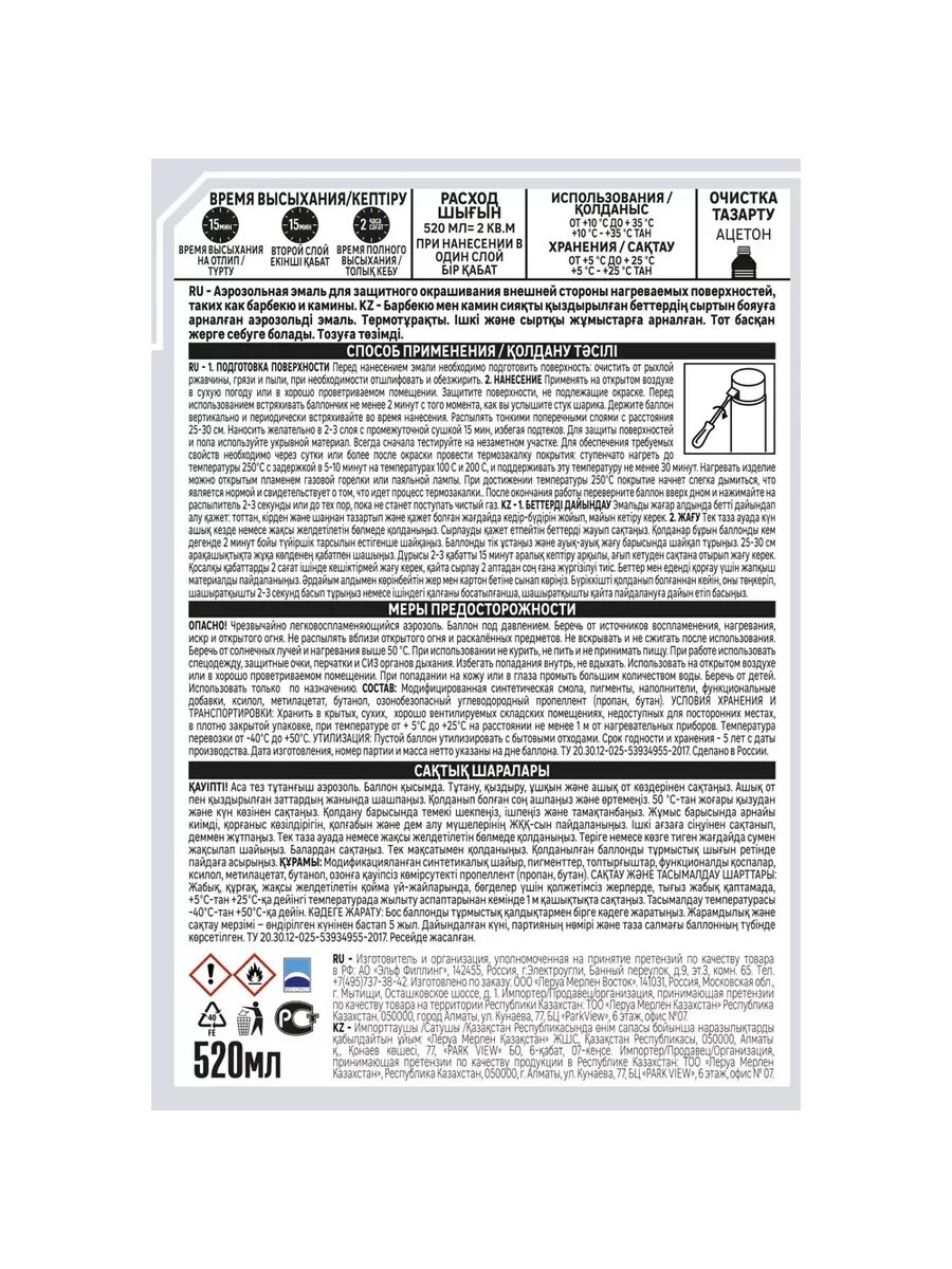 Эмаль аэрозольная термостойкая матовая ,520 мл информация: