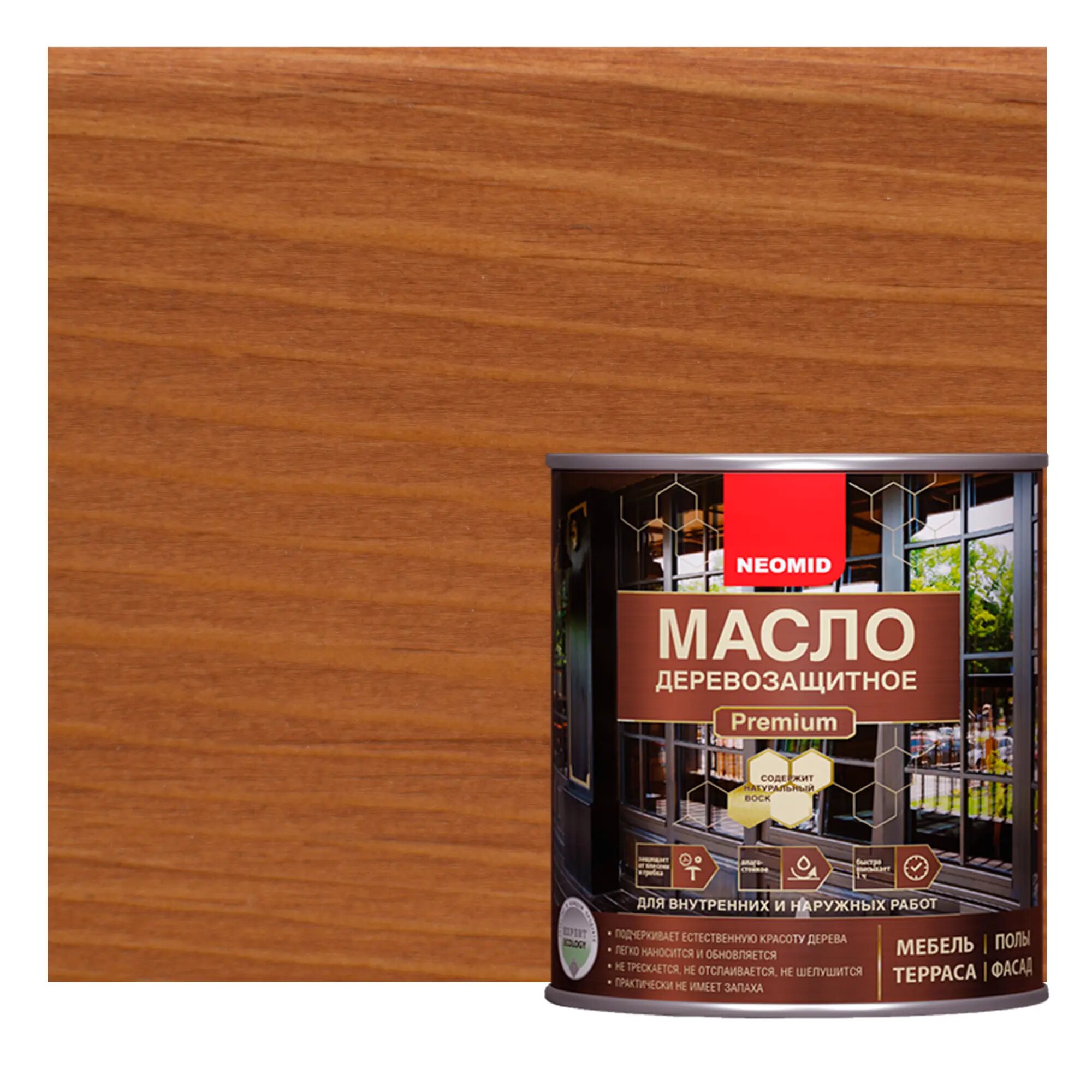 Отзывы на Масло с Натуральным Воском Neomid Premium 2л Тик Деревозащитное, Износостойкое для Внутренних и Наружных Работ / Неомид.