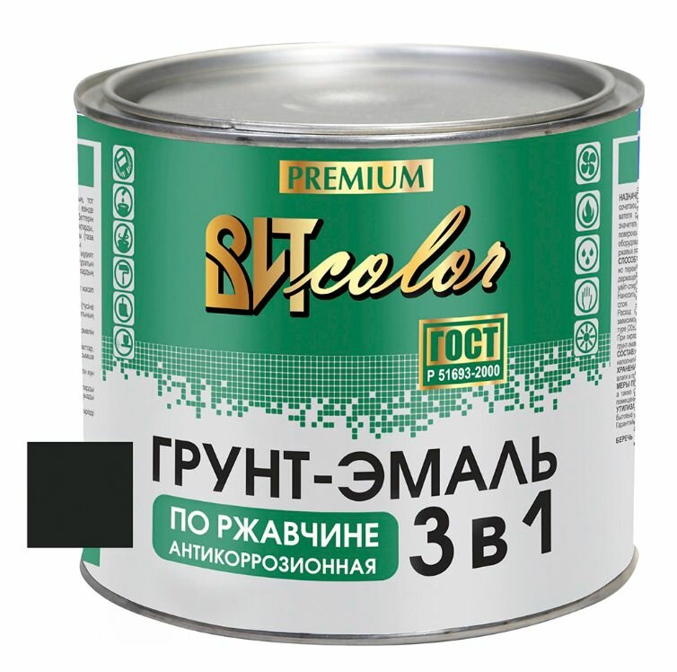 Грунт-эмаль по ржавчине ВИТcolor 3в1 черная 1,8 кг информация: