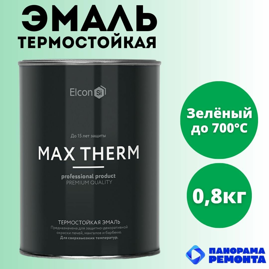 10 цен на Эмаль термостойкая Elcon Max Therm зеленая 0,8кг (до 700С) для печей, мангалов, радиаторов, суппортов