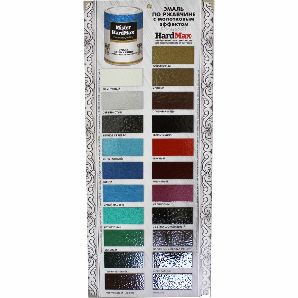 0 отзывов, средняя оценка 0. Чтобы купить «HardMax Эмаль молотковая 3 в 1 краска по металлу, по ржавчине , глянцевое покрытие, темная медь, 2.5 кг» по лучшей цене мы сканируем авито, алиэкспресс, маркет, озон, савеловский, плеер, горбушку, беру, официальные сайты и находим минимальную. Администрация не несет ответсвенность актуальность цен на HardMax Эмаль молотковая 3 в 1 краска по металлу, по ржавчине , глянцевое покрытие, темная медь, 2.5 кг, более подробно узнавайте на сайте магазина.
