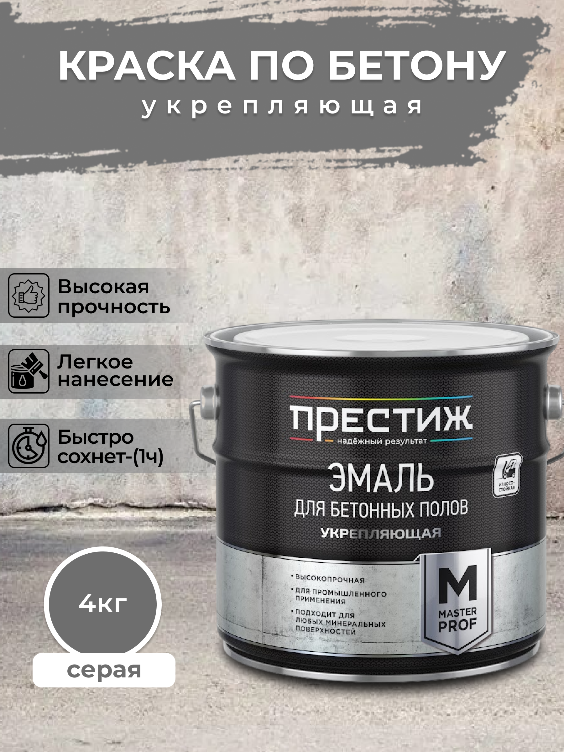 10 цен на Эмаль для бетонных полов укрепляющая Престиж , полуматовая, 4 кг, серая