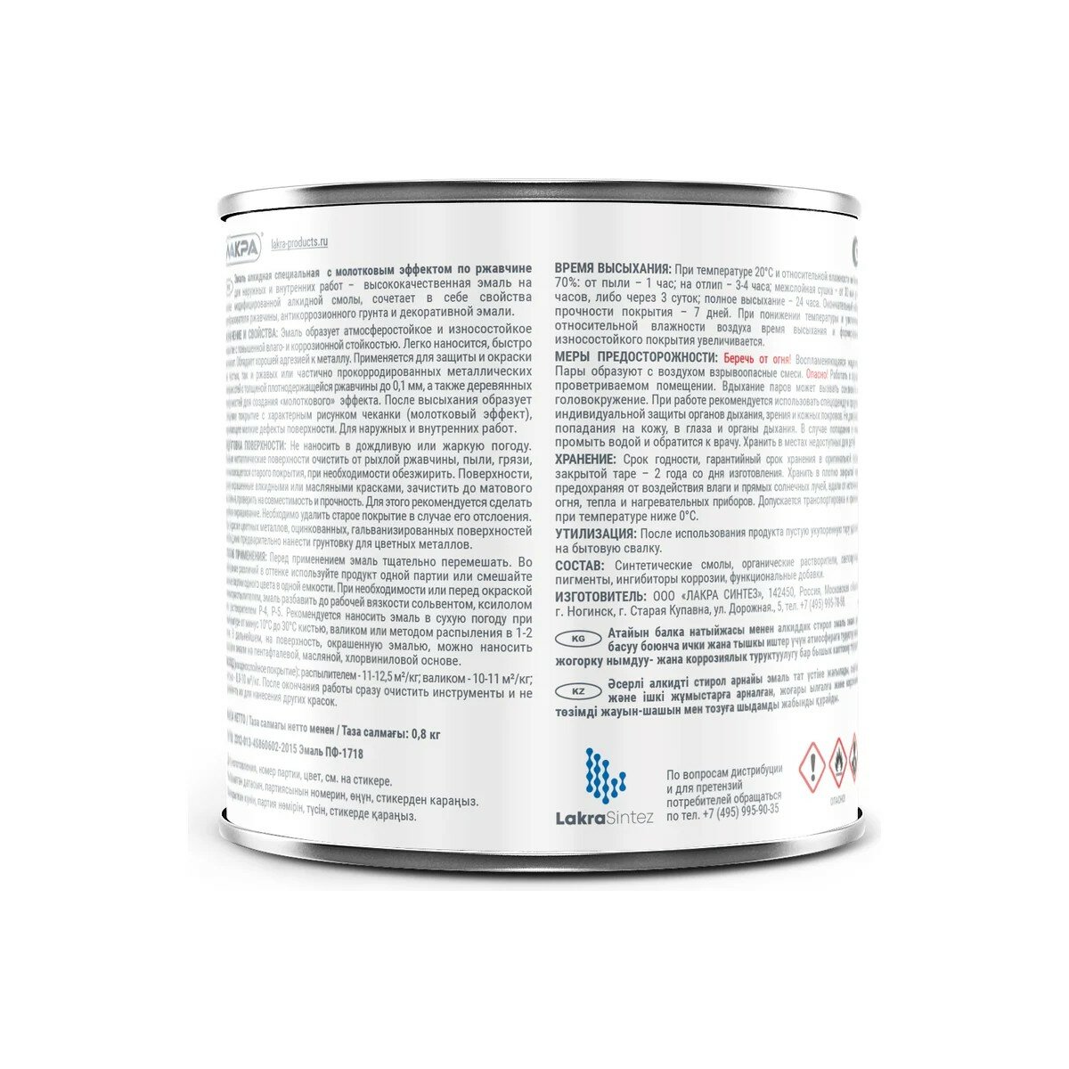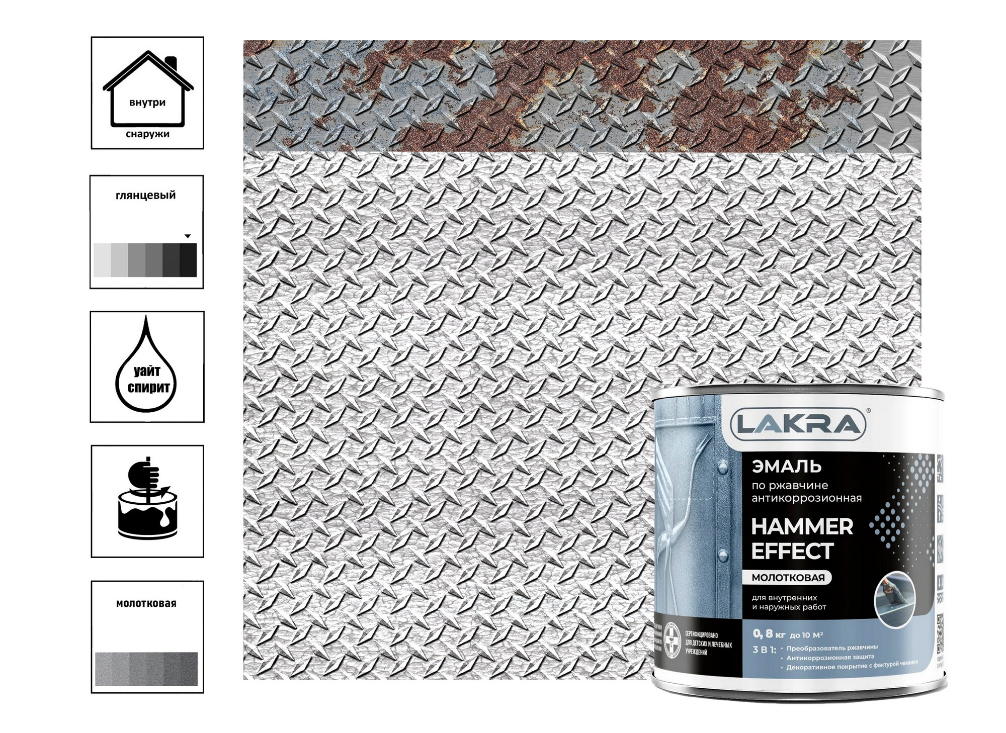 Эмаль по ржавчине Лакра с молотковым эффектом серебро 0,8 кг информация:
