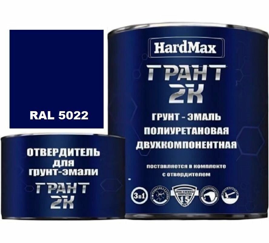 HardMax Грунт-эмаль Грант, краска 2-х компонентная полиуретановая / Быстросохнущая, Гладкая, Полуглянцевое покрытие, 2 л, 2.19 кг, RAL 5022 Синяя ночь информация: