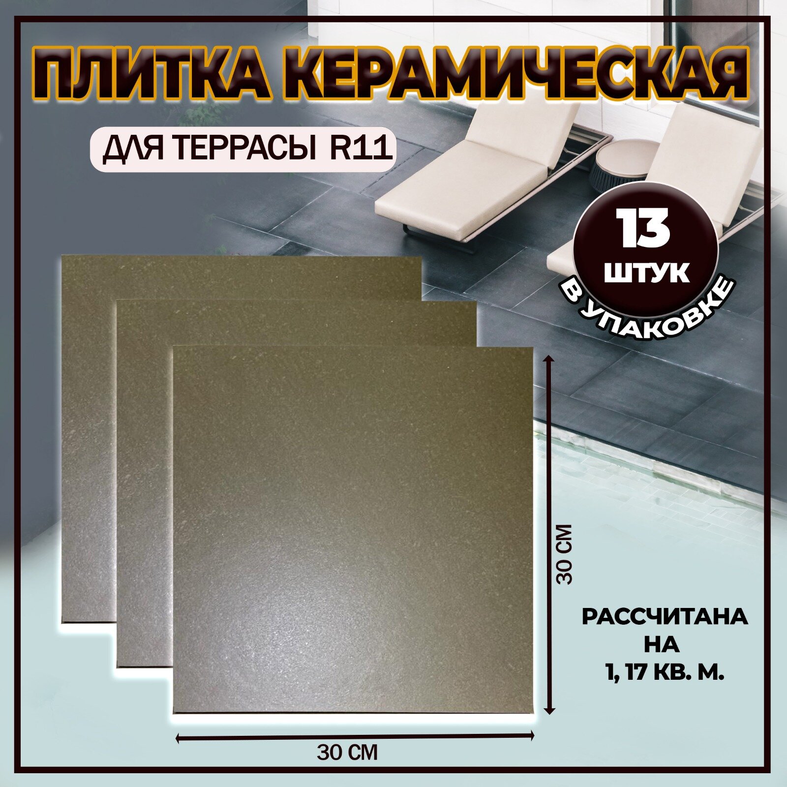 10 цен на Плитка керамическая для пола. Керамический гранит 30х30, R11, однотонный, коричневый.