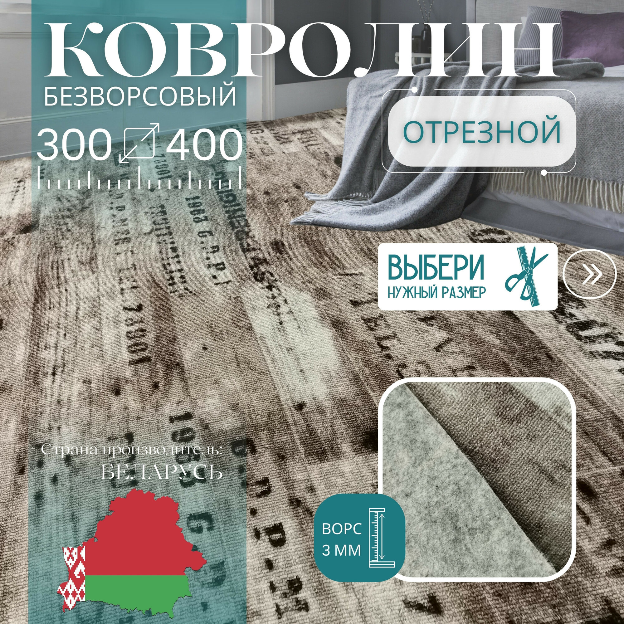 10 цен на Ковролин метражом 3х4 м, без ворса "Шрифт", коричневый без оверлока