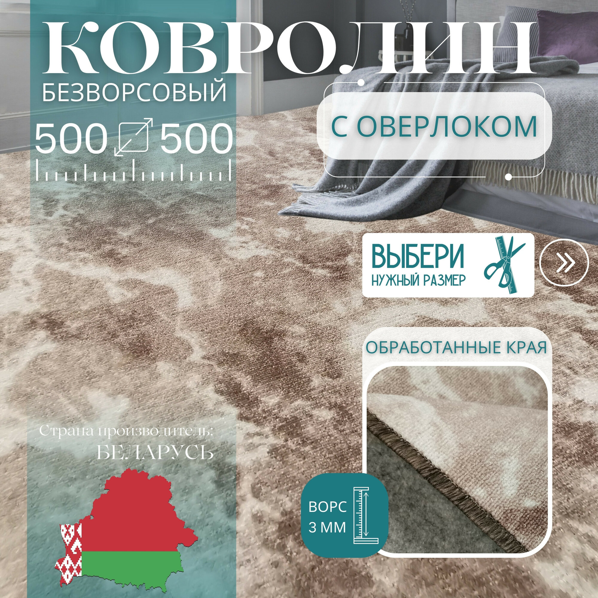 10 цен на Ковролин метражом 5х5 м, без ворса "Мрамор", бежевый с оверлоком