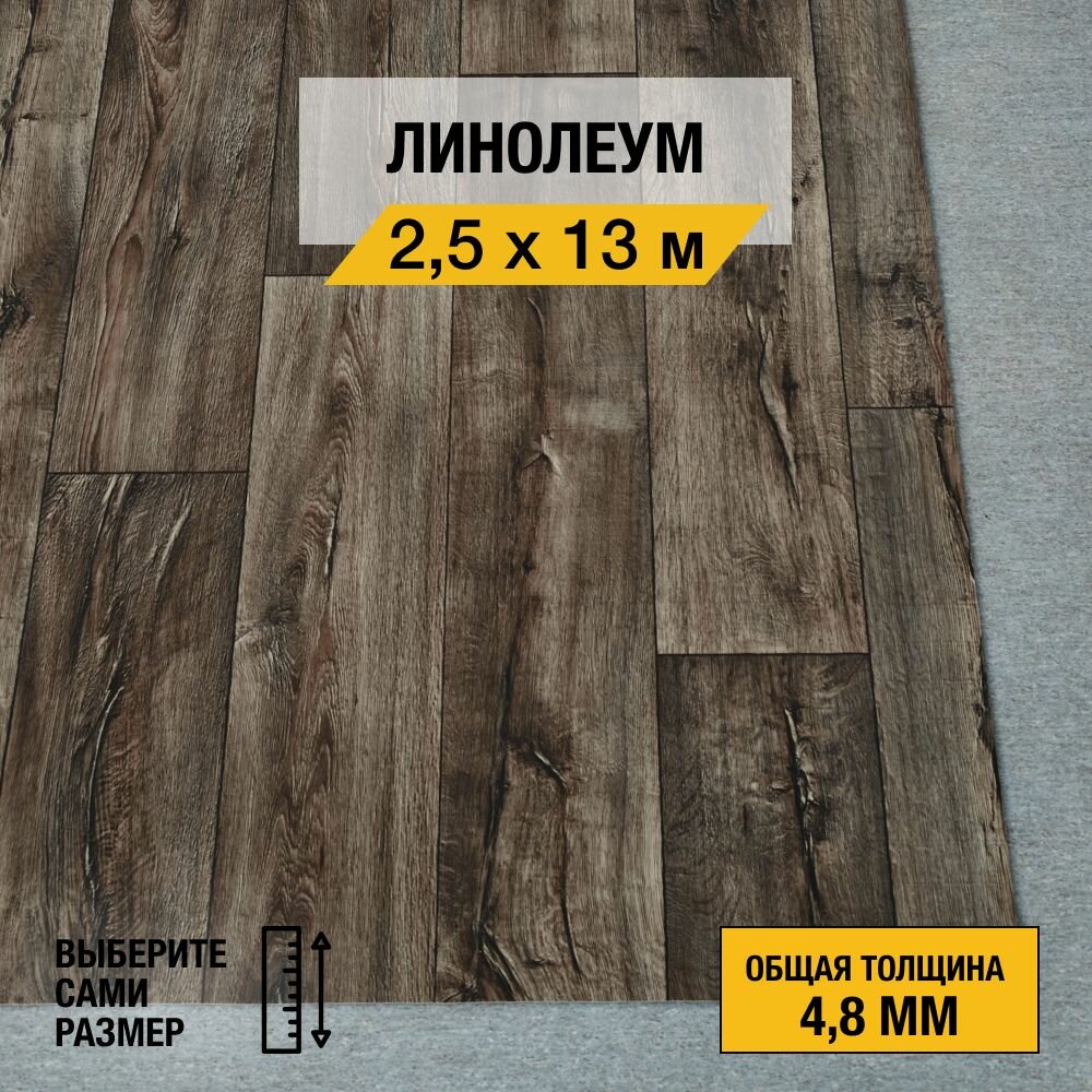 Линолеум напольный на отрез iDEAL, коллекции Ultra "Cracked oak 2". Полукоммерческий линолеум 2,5х1м. для пола в рулоне 23,32 класса 8 768 ₽
