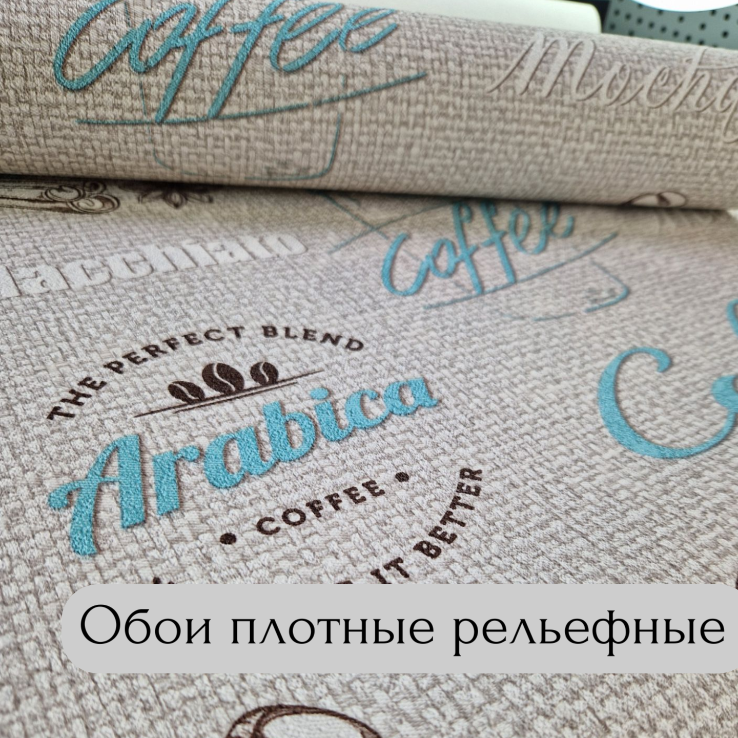 10 цен на Обои для кухни Belvinil "Кофе", флизелин, светло-серо-бирюзовые, 0,53x10 м