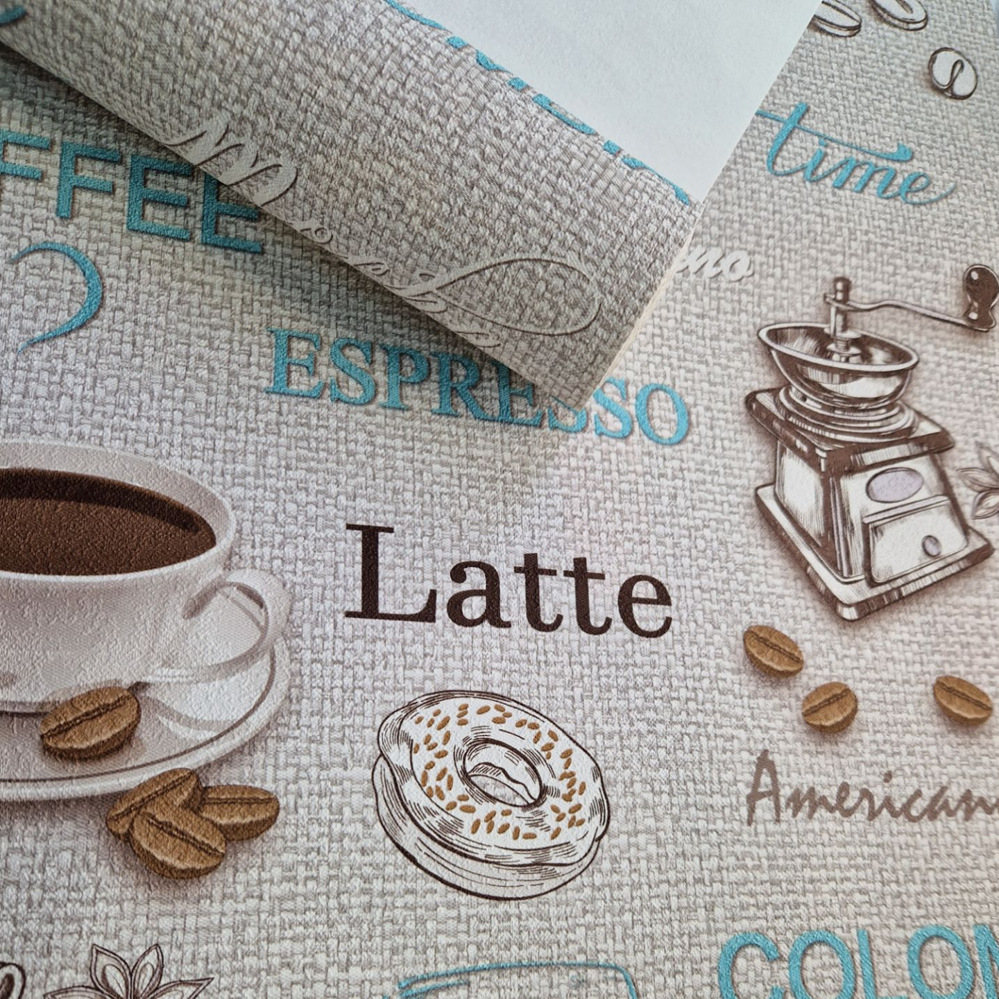Обои для кухни Belvinil "Кофе", флизелин, светло-серо-бирюзовые, 0,53x10 м информация:
