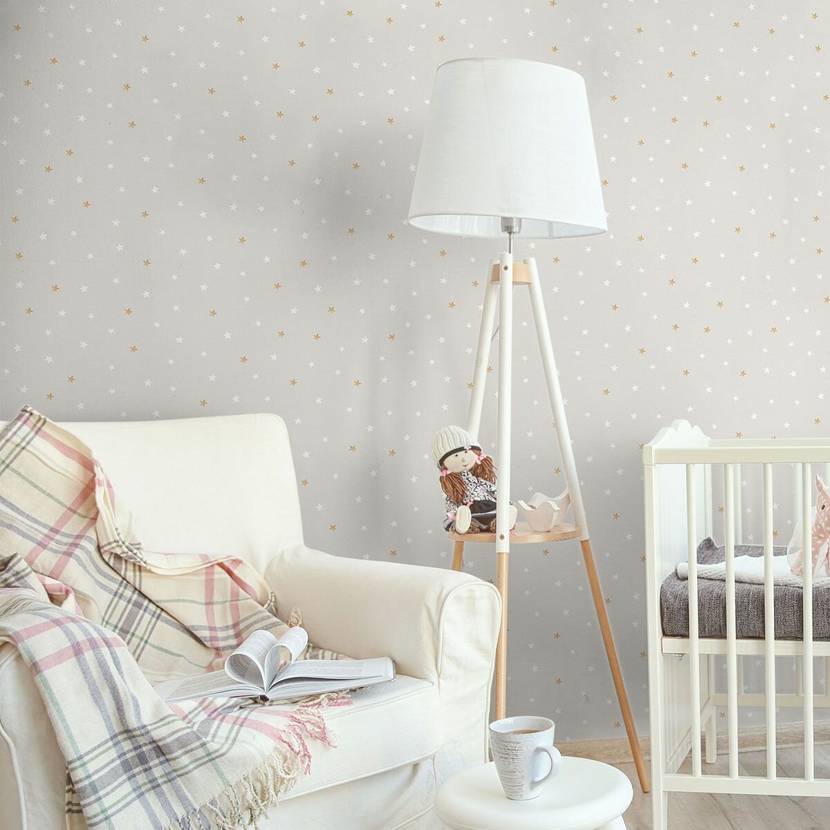 Обои флизелиновые виниловые, для детской, звезды на сером, моющиеся, метровые, Romarta информация: