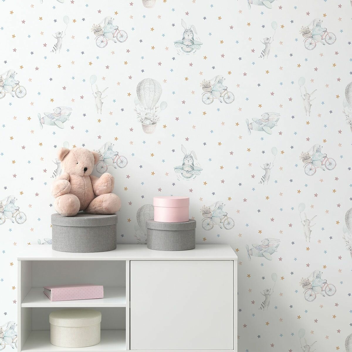 Обои виниловые на флизелиновой основе, в детскую комнату, зайчики и звезды, матовые, метровые, Romarta информация: