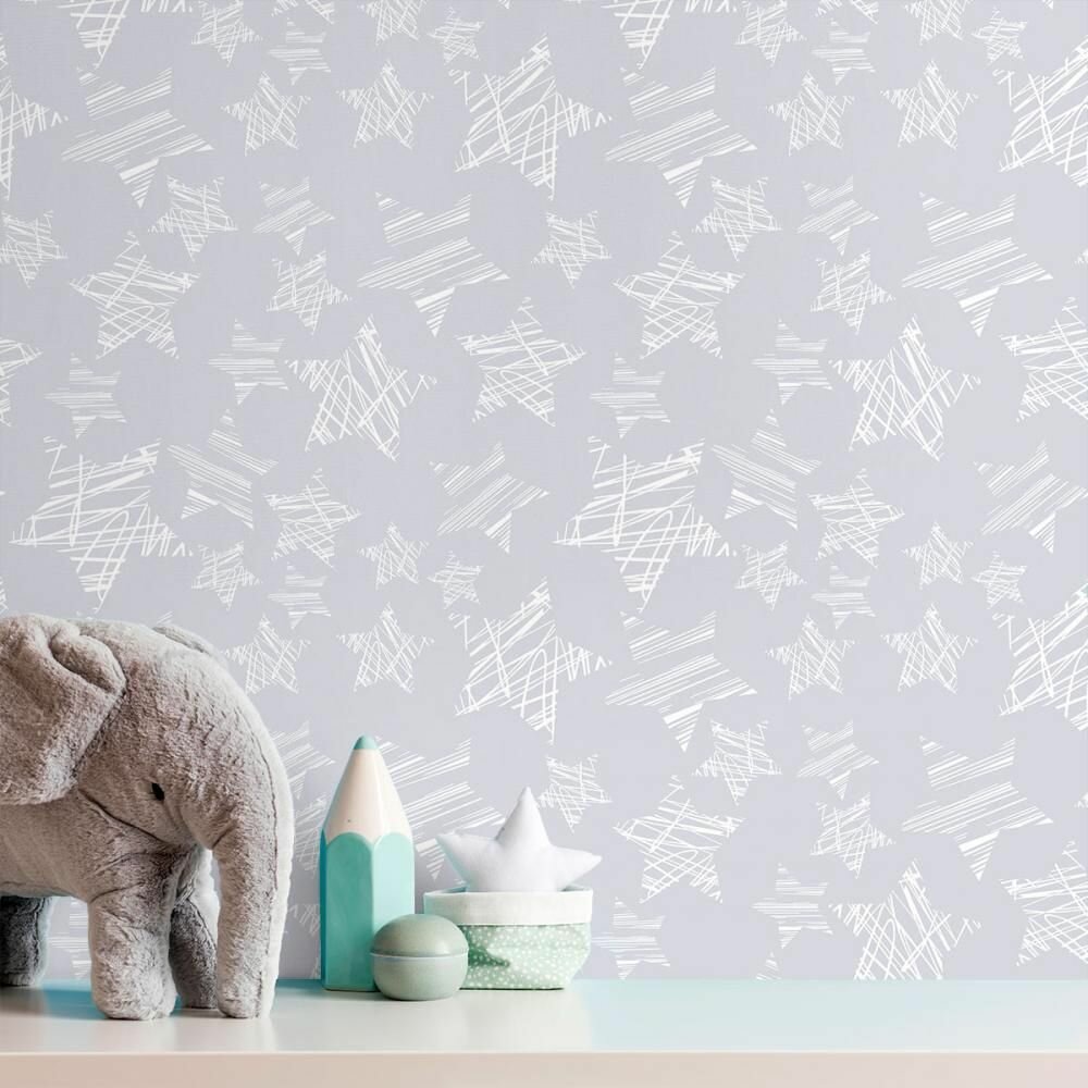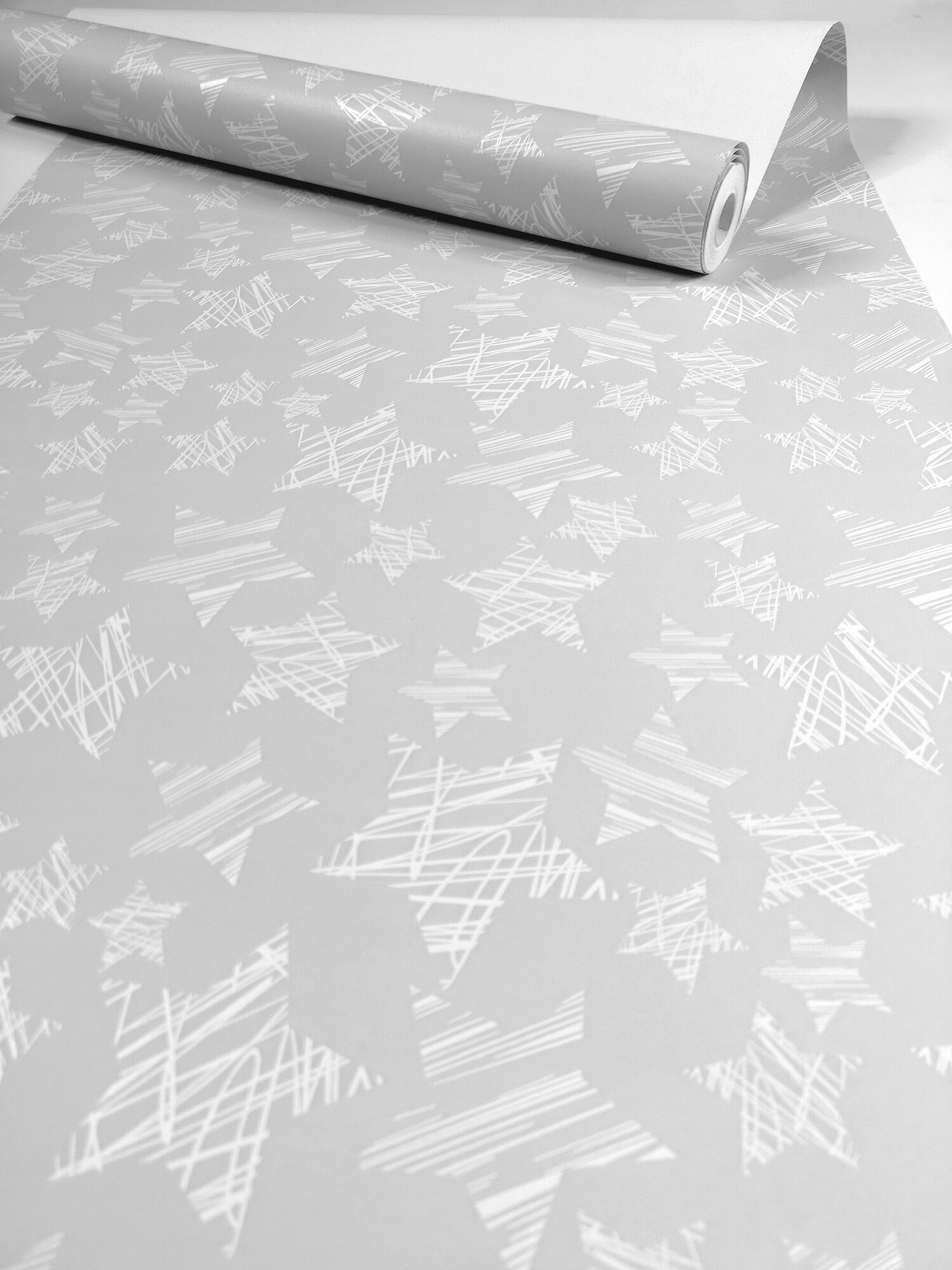 Обои бумажные плотные (дуплекс), матовые, без ПВХ, можно клеить в детскую и спальню, серые со звездами /0.53х10м/ информация:
