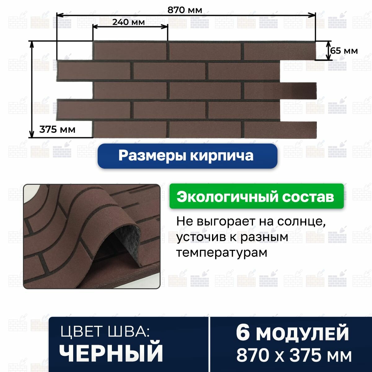 Гибкий модульный кирпич с расшивкой 1.7 м2 информация: