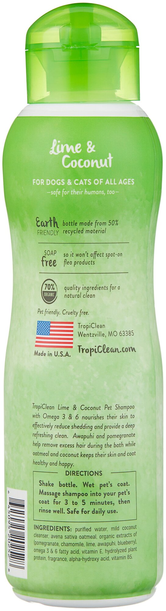 Шампунь 355мл Лайм и кокос для собак и кошек от линьки информация: