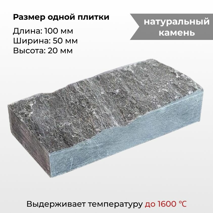 Плитка из талькохлорита Рваный камень (облицовочный) натуральный камень для отделки бани и сауны, 100x50x20 мм, упаковка 50 шт (0,25 кв.м.) информация: