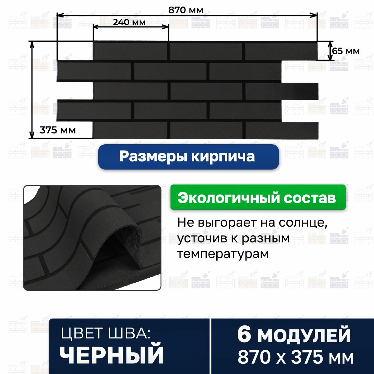 Гибкий модульный кирпич с расшивкой -1.7 м2 Графитовый информация: