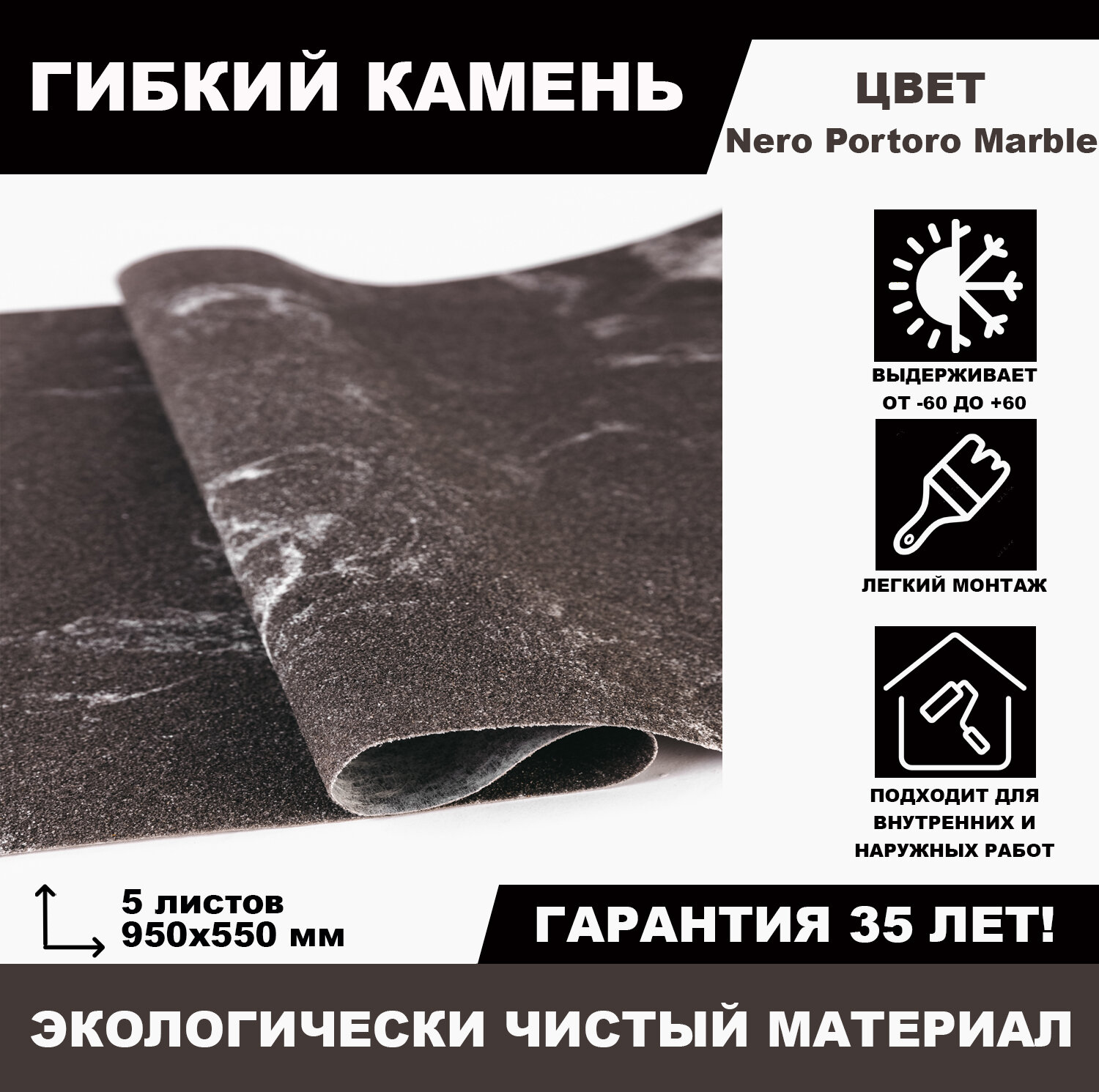 Гибкий камень Nero Portoro Marble информация: