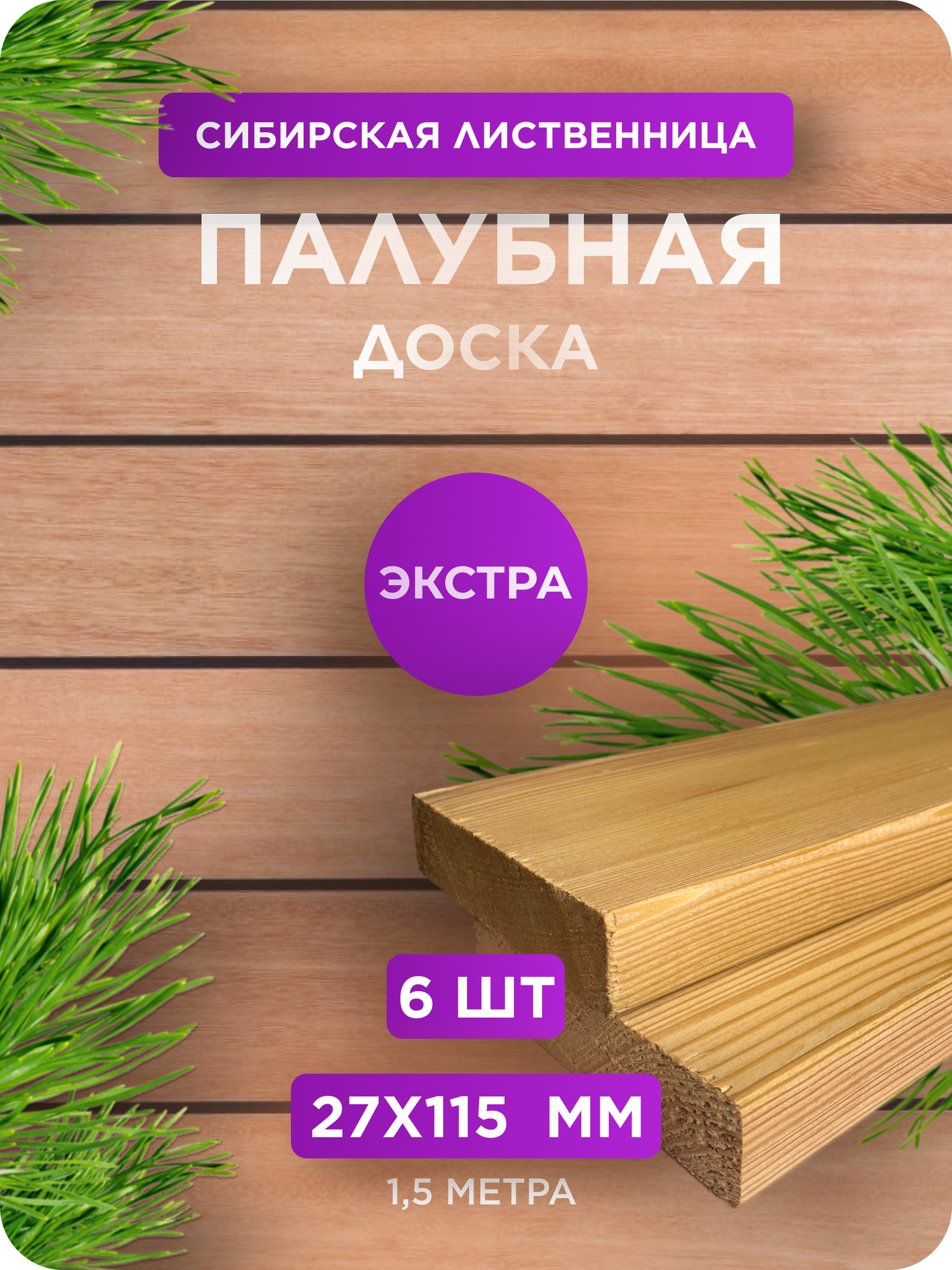 Палубная доска из лиственницы сорт Экстра 27х115х1500 - 6 шт информация: