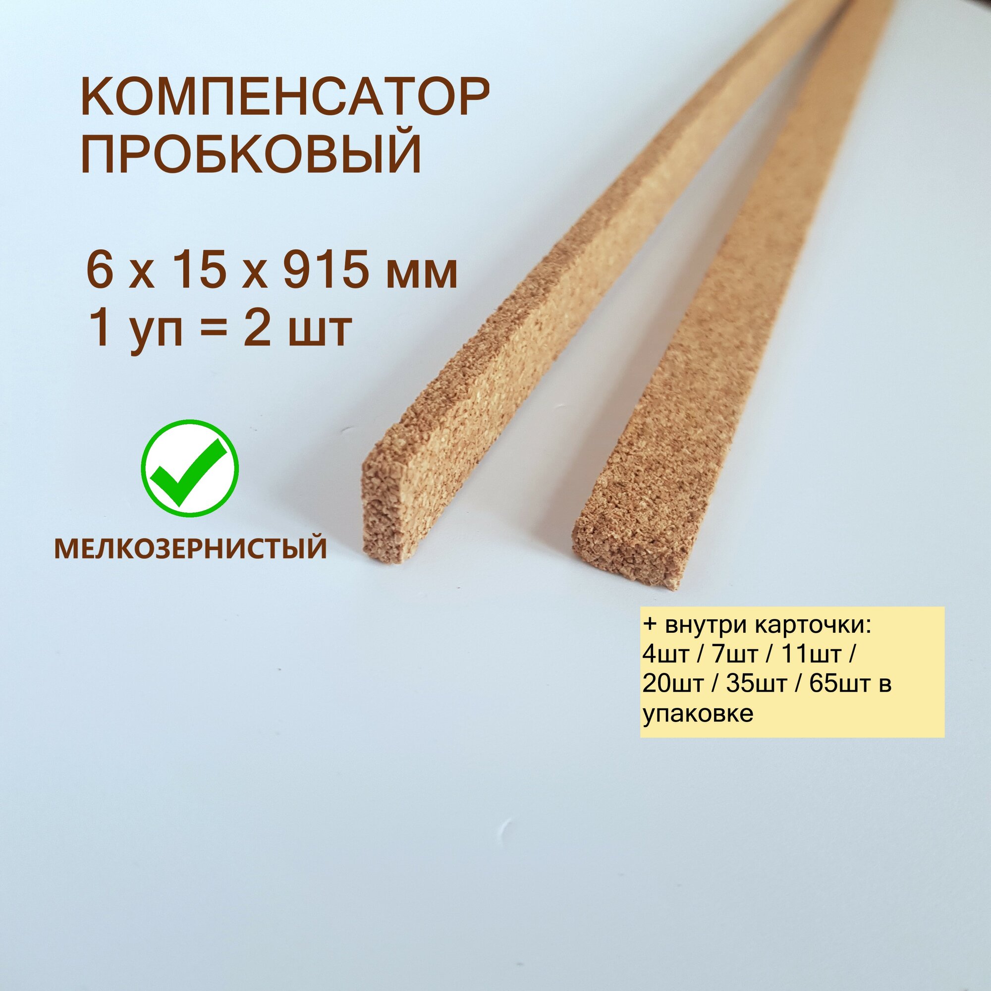 10 цен на Пробковый компенсатор 6x15х915мм (2шт/уп), гибкий порог для пола, ламината, плитки, паркета, SPC. Мелкозернистый.
