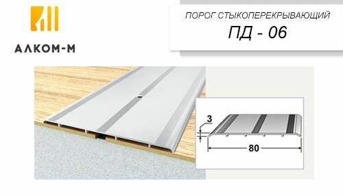 Порог алюминиевый стыкоперекрывающий одноуровневый стык (ПД 06) 80x3 1800 мм мербау 2 196 ₽
