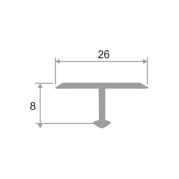 Профиль Т-образный алюминиевый анодированный (порожек) для плитки 26мм 2,7м Серебро матовое информация: