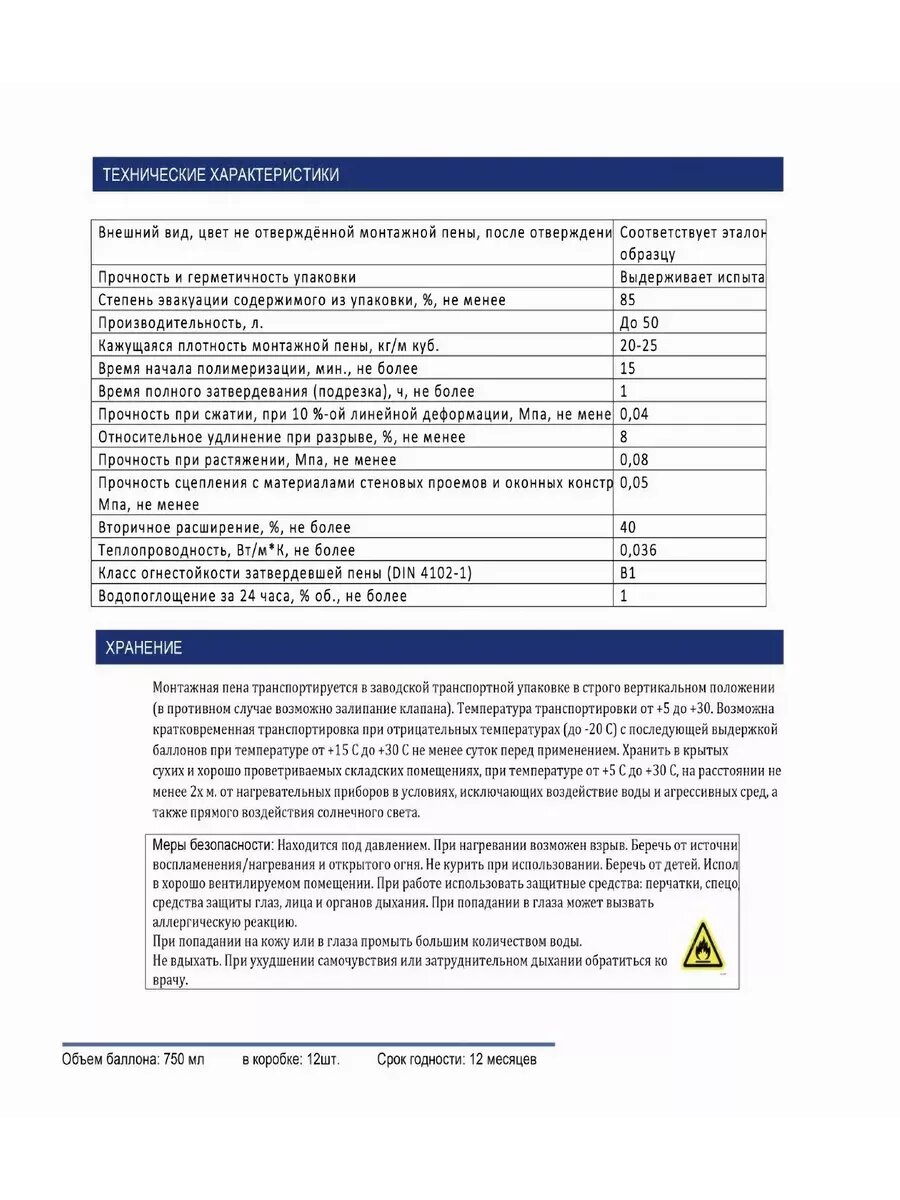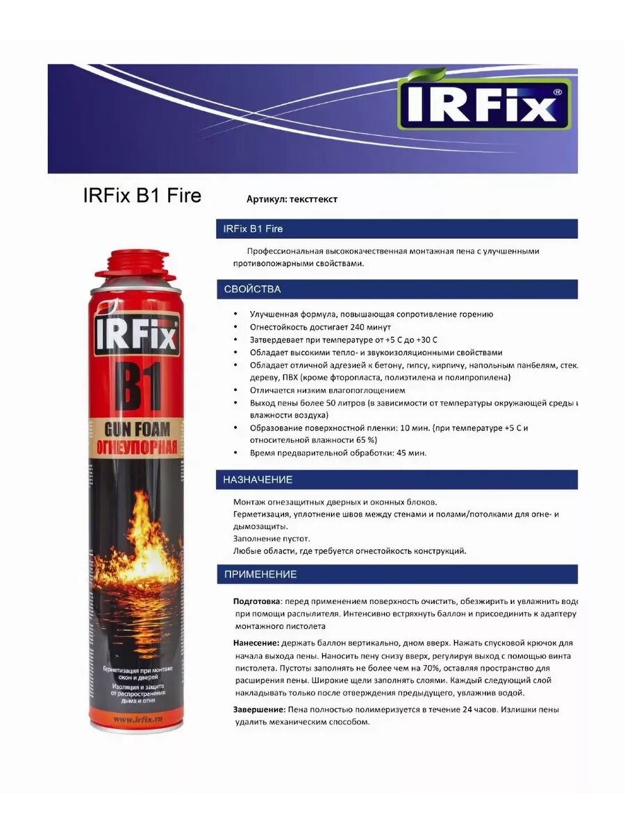 Пена монтажная-профессиональная огнеупорная B1 информация: