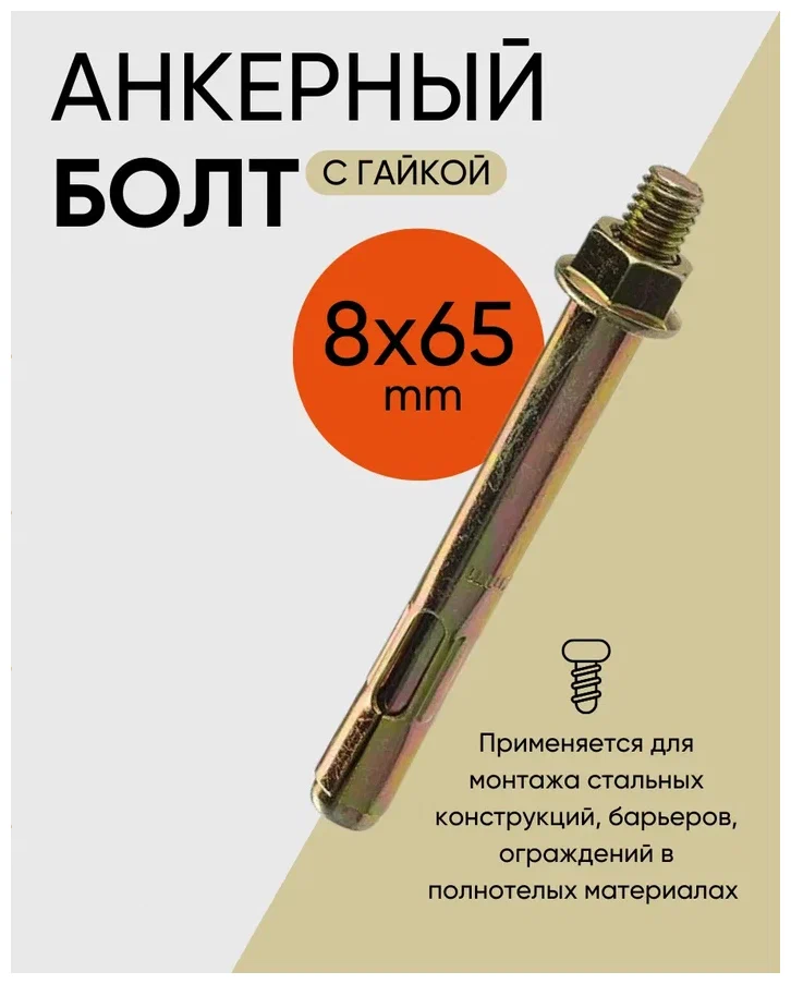 Анкерный болт с гайкой 8х65 (10 шт.) (анкер) информация: