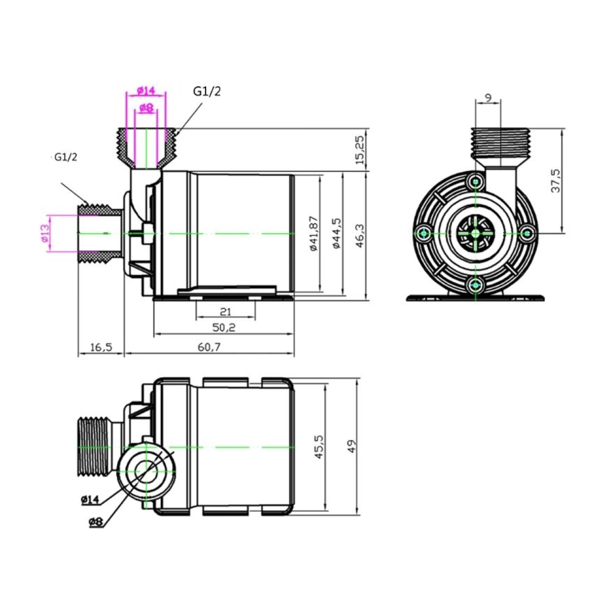| Диаметр резьбы выходящего отверстия (G) | 1 / 2" |