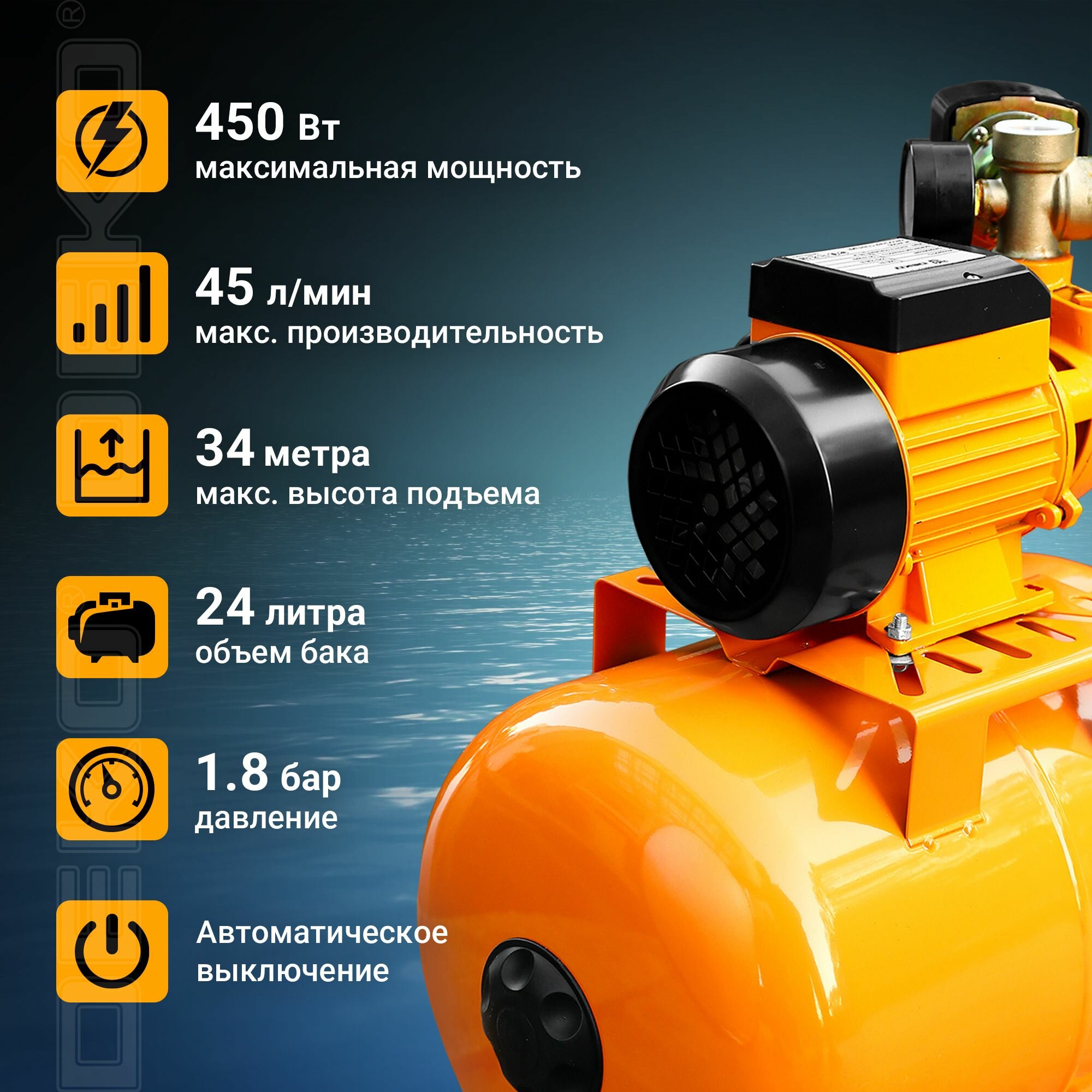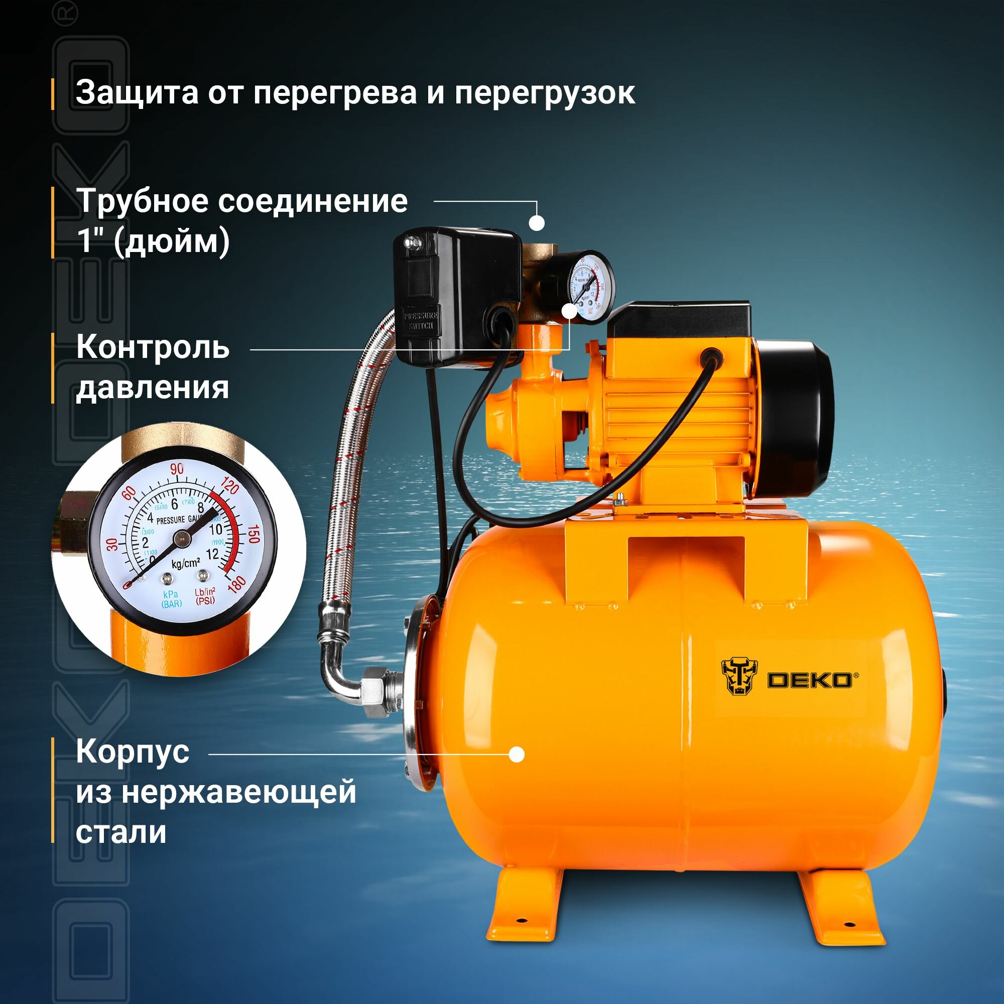 Насосная станция DEKO DKJP450 PLUS, 450Вт, 45 л/мин, 24л информация: