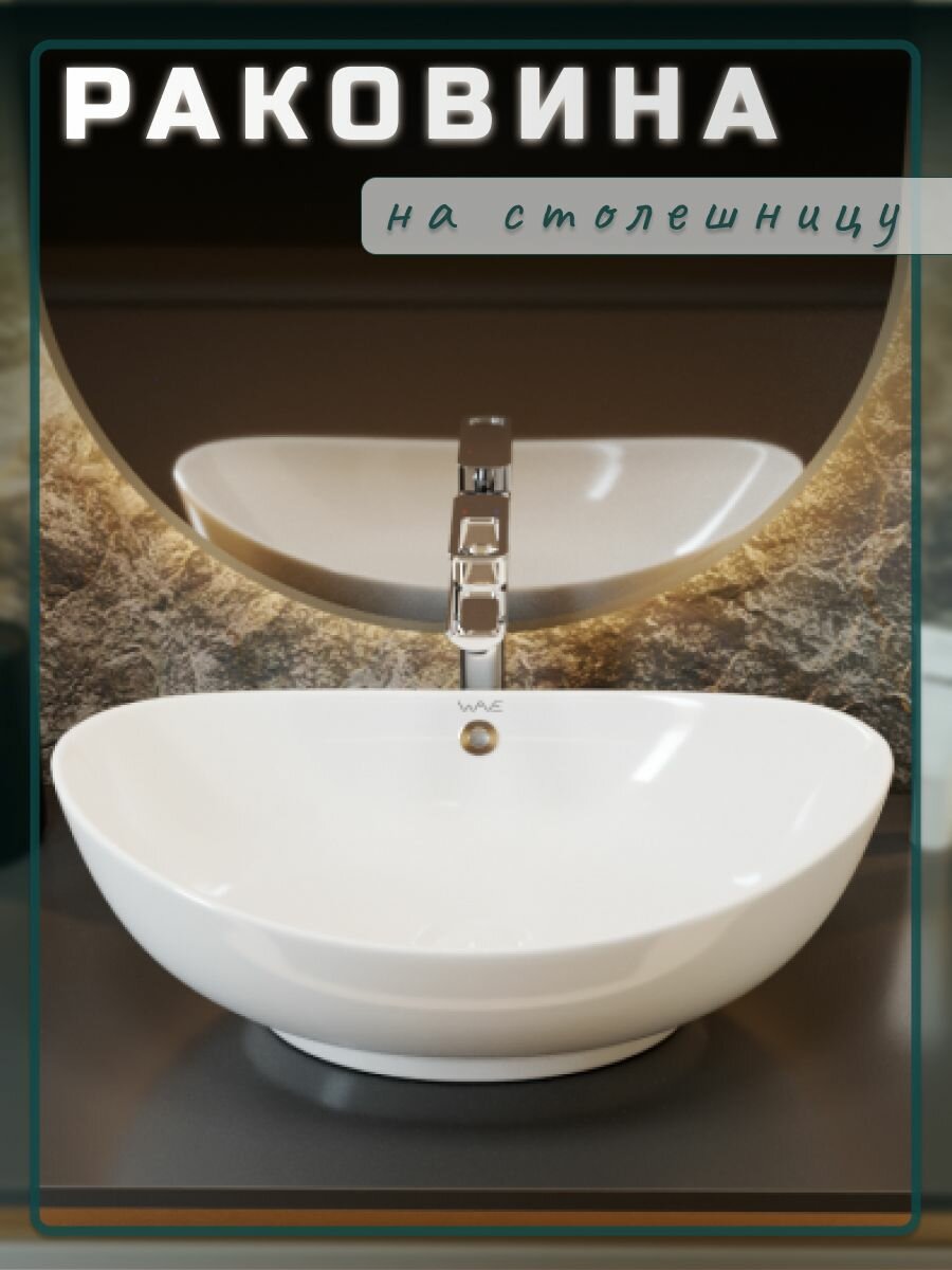 Отзывы на Раковина в ванную накладная на столешницу овал 590*390*195 Ш*Г*В