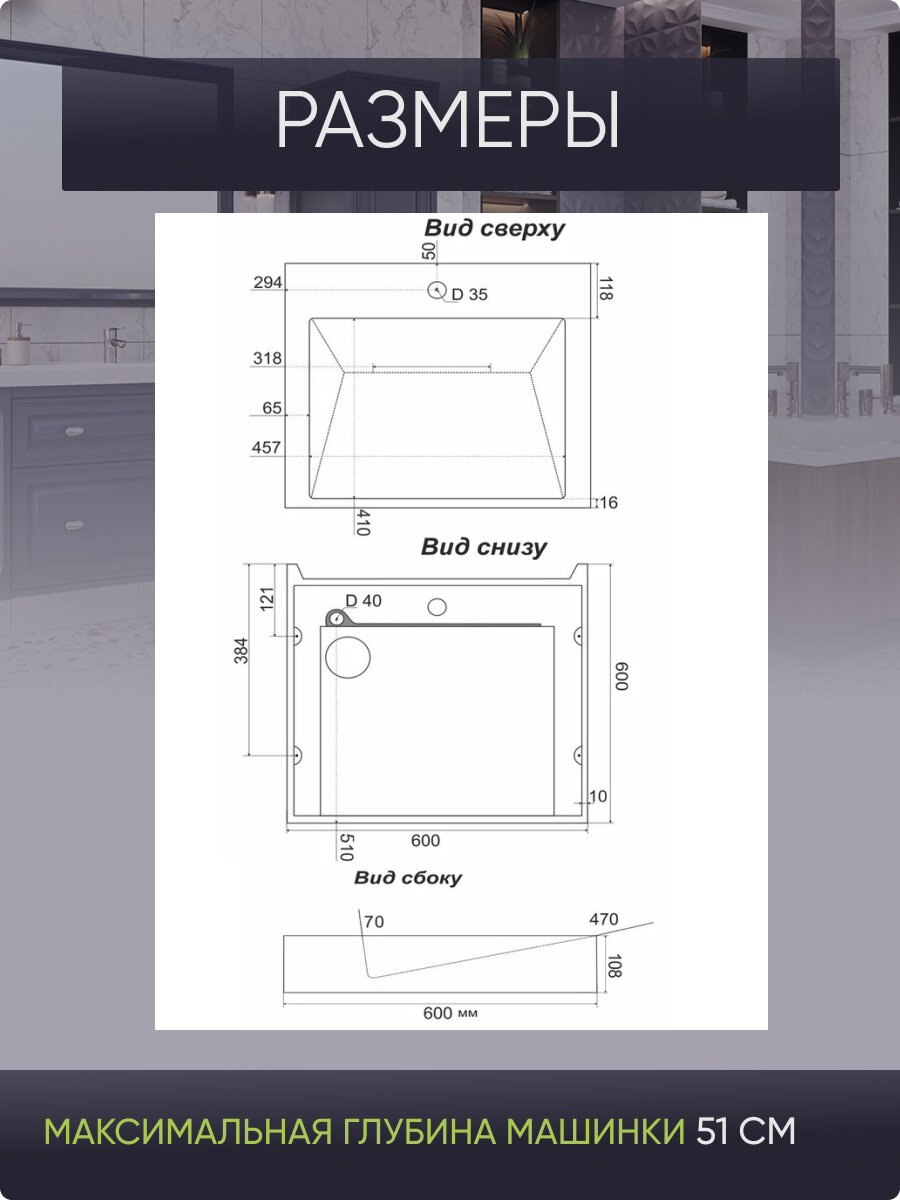 Раковина над стиральной мышиной 60х60 BL60 информация: