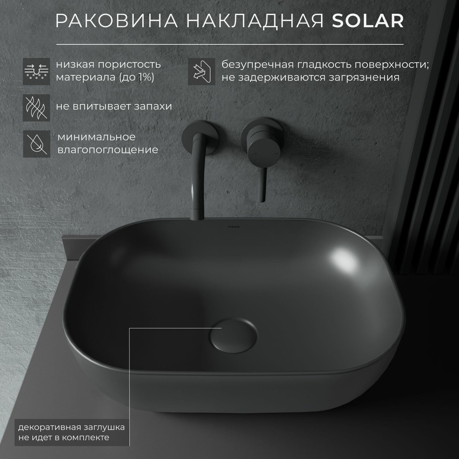 Раковина накладная для ванной ITANA SOLAR grey 455х325х135 информация: