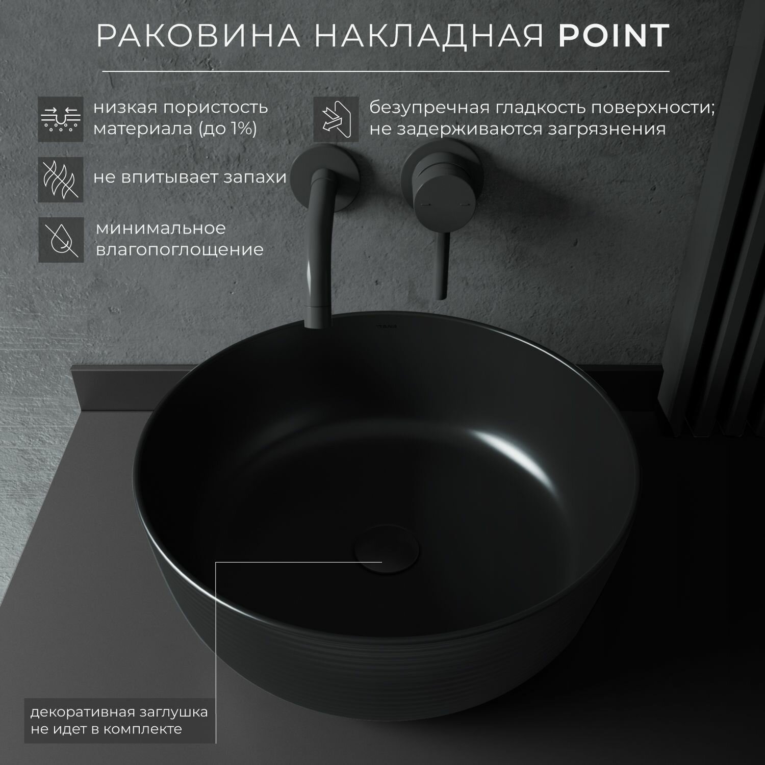 Раковина накладная для ванной ITANA POINT blаck 358х358х137 информация: