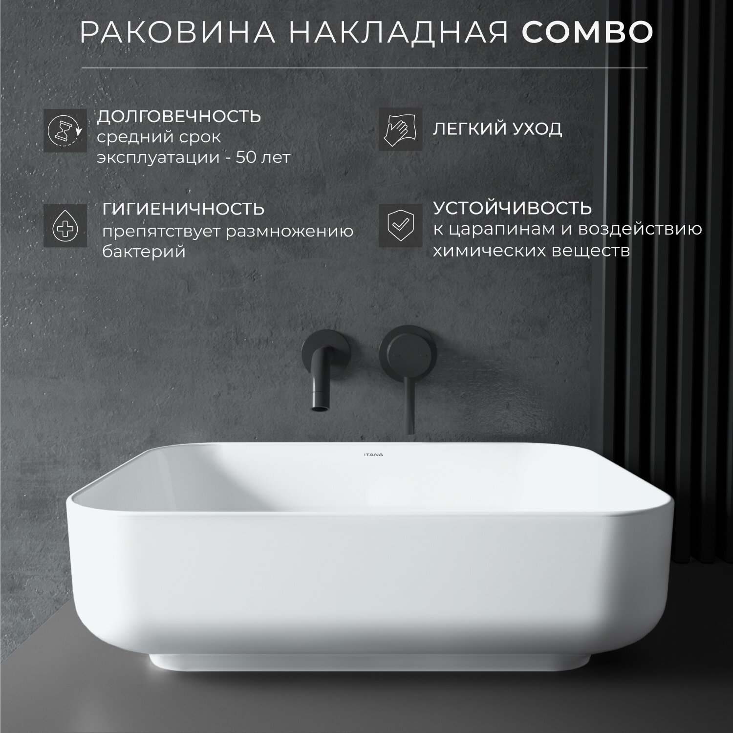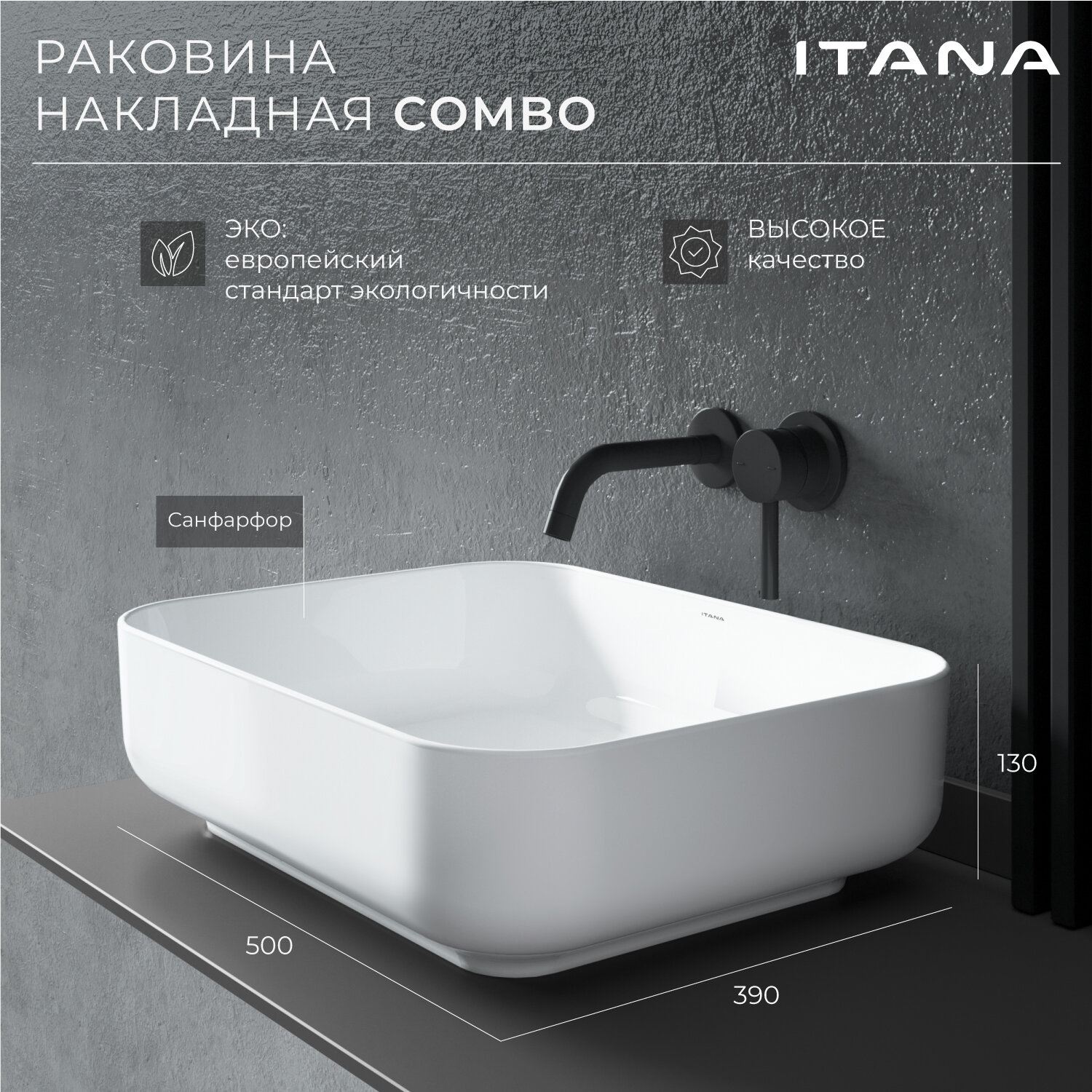 Раковина накладная для ванной ITANA COMBO white 500х390х130 информация: