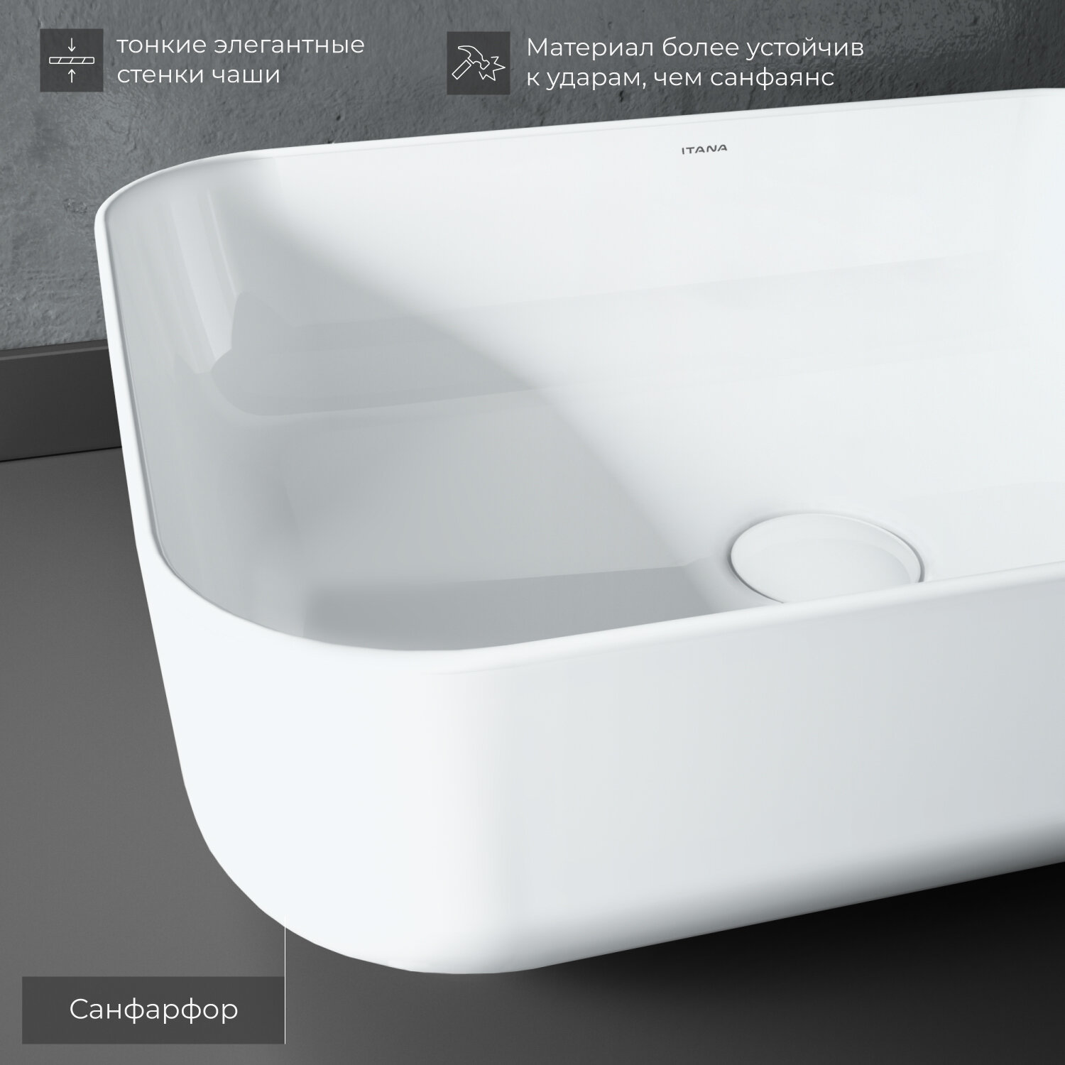 Раковина накладная для ванной ITANA SOLAR grey 455х325х135 7 098 ₽