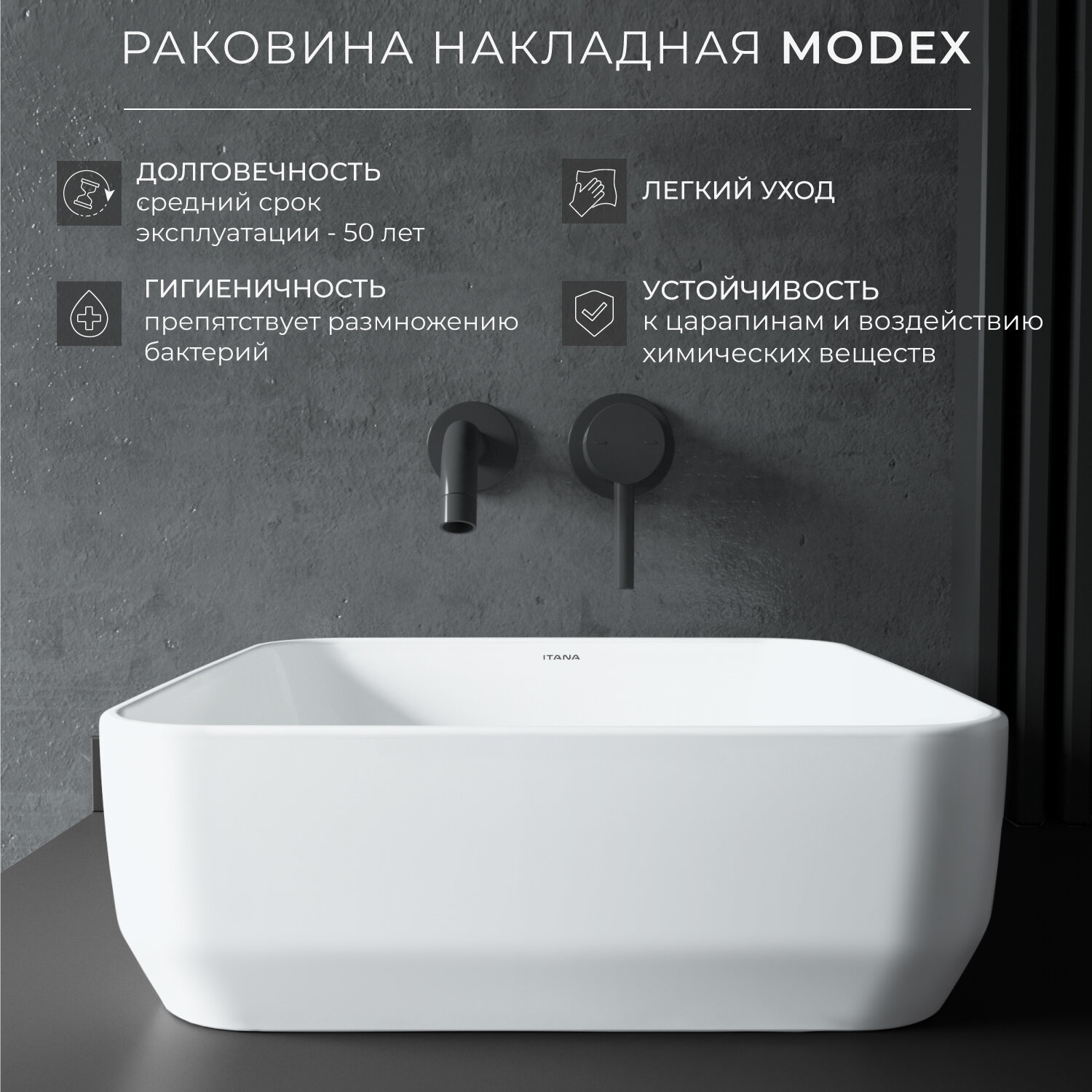 Раковина накладная для ванной ITANA MODEX white 360х360х125 информация: