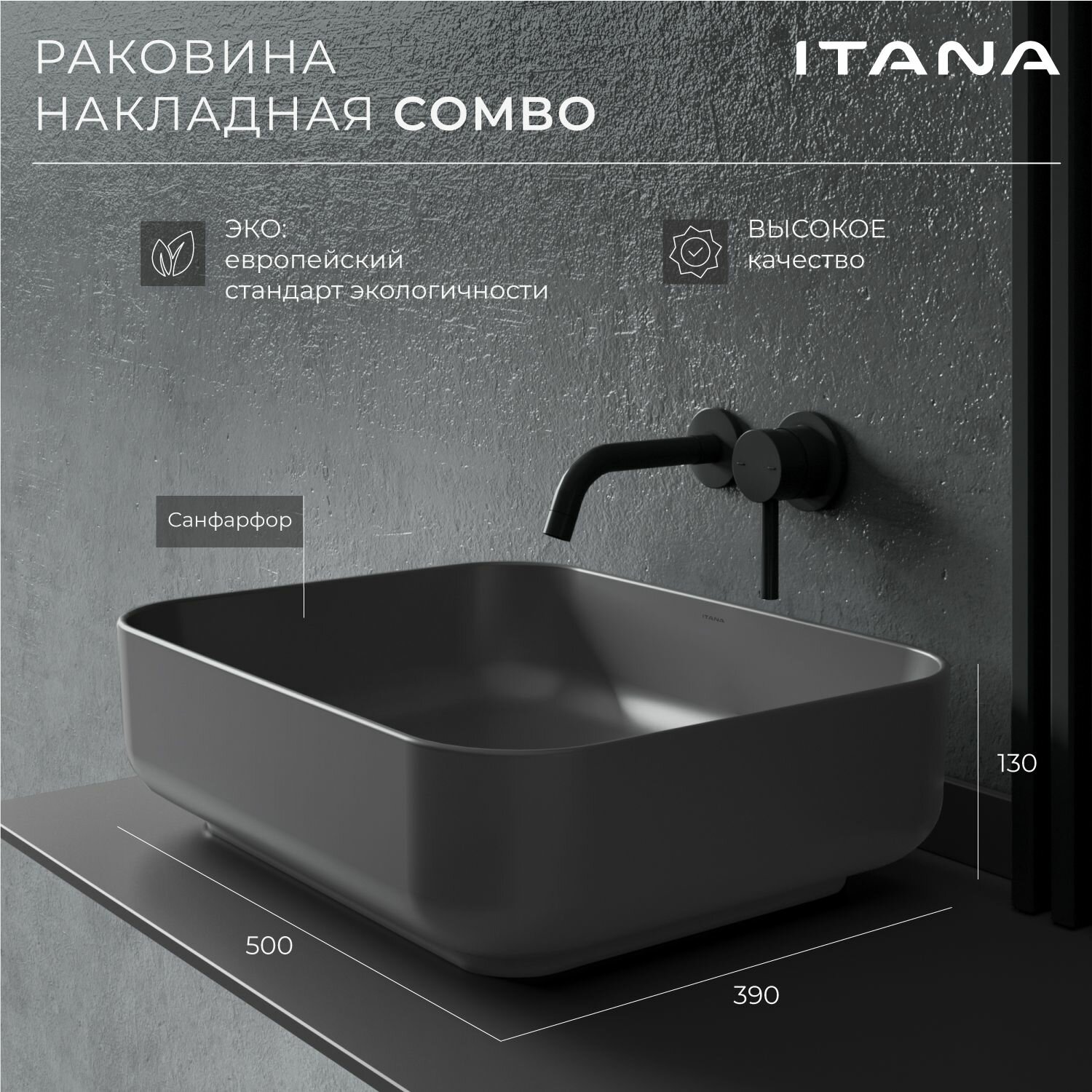 Раковина накладная для ванной ITANA COMBO grey 500х390х130 информация: