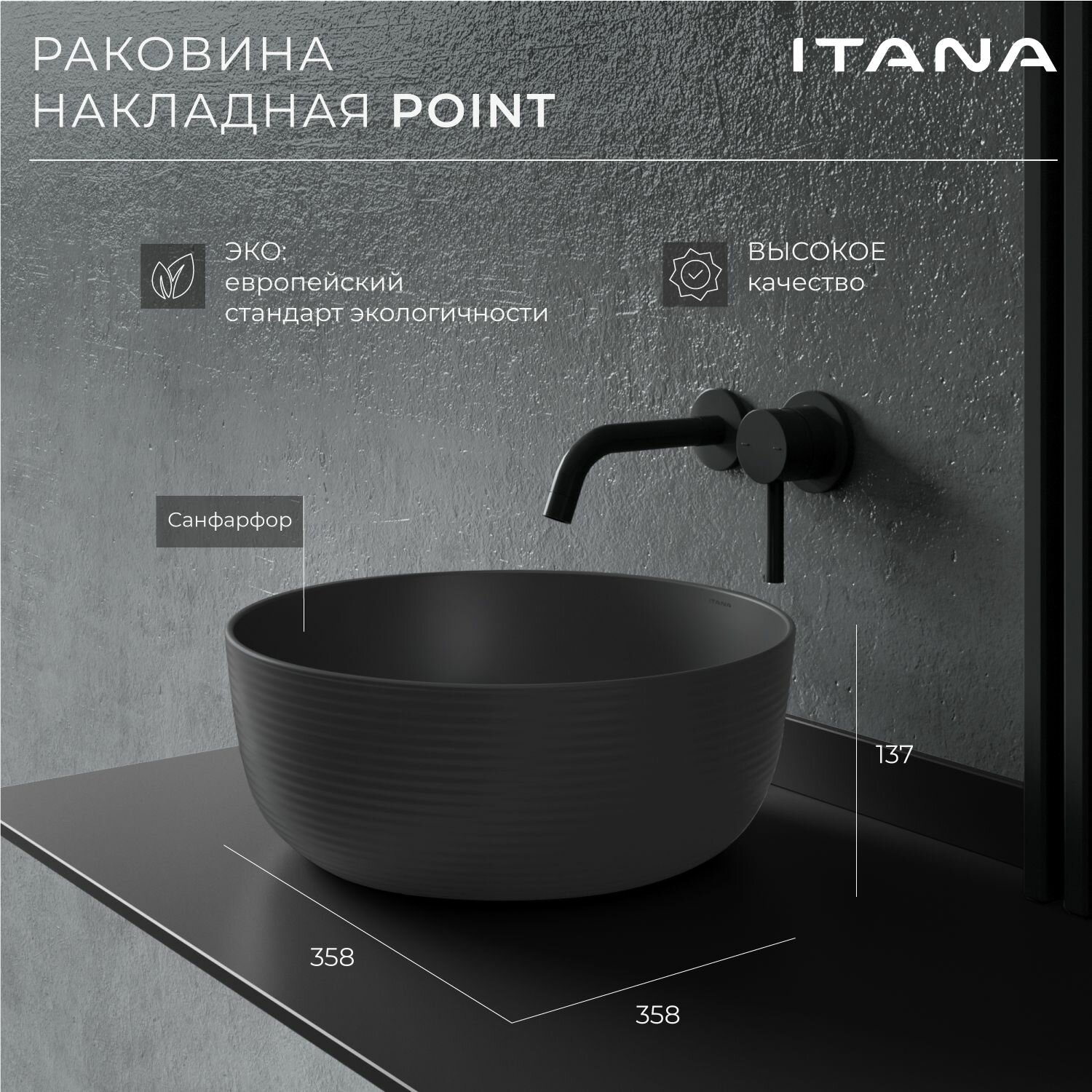 Раковина накладная для ванной ITANA POINT blаck 358х358х137 9 087 ₽