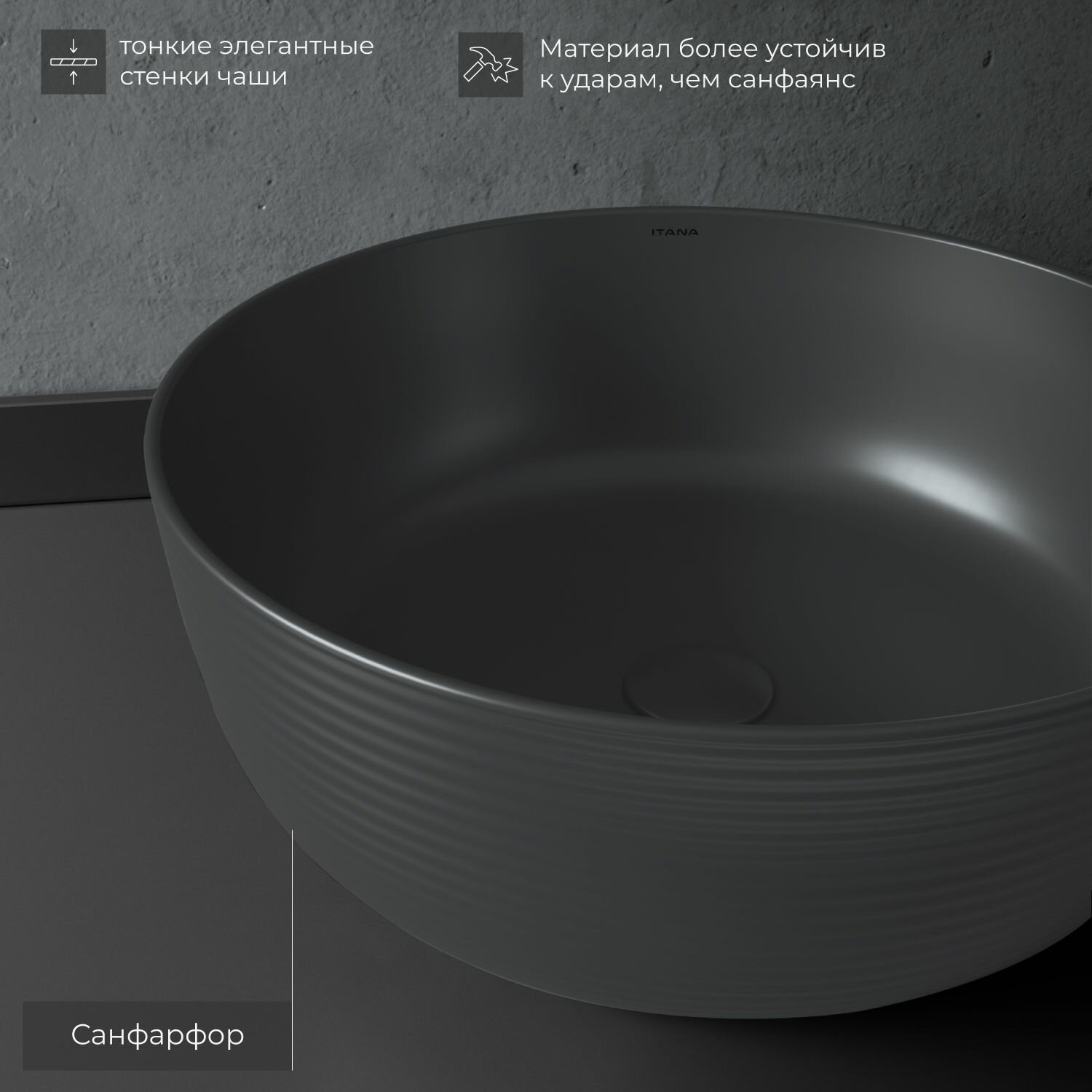 Раковина накладная для ванной ITANA SOLAR grey 455х325х135 7 098 ₽