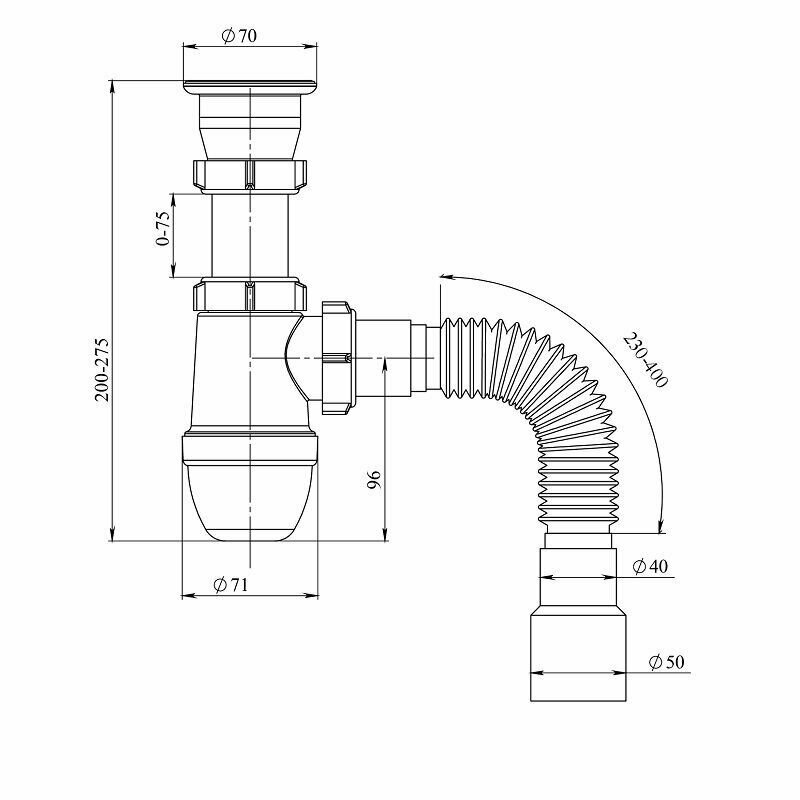 | Конструкция сифона | бутылочный |