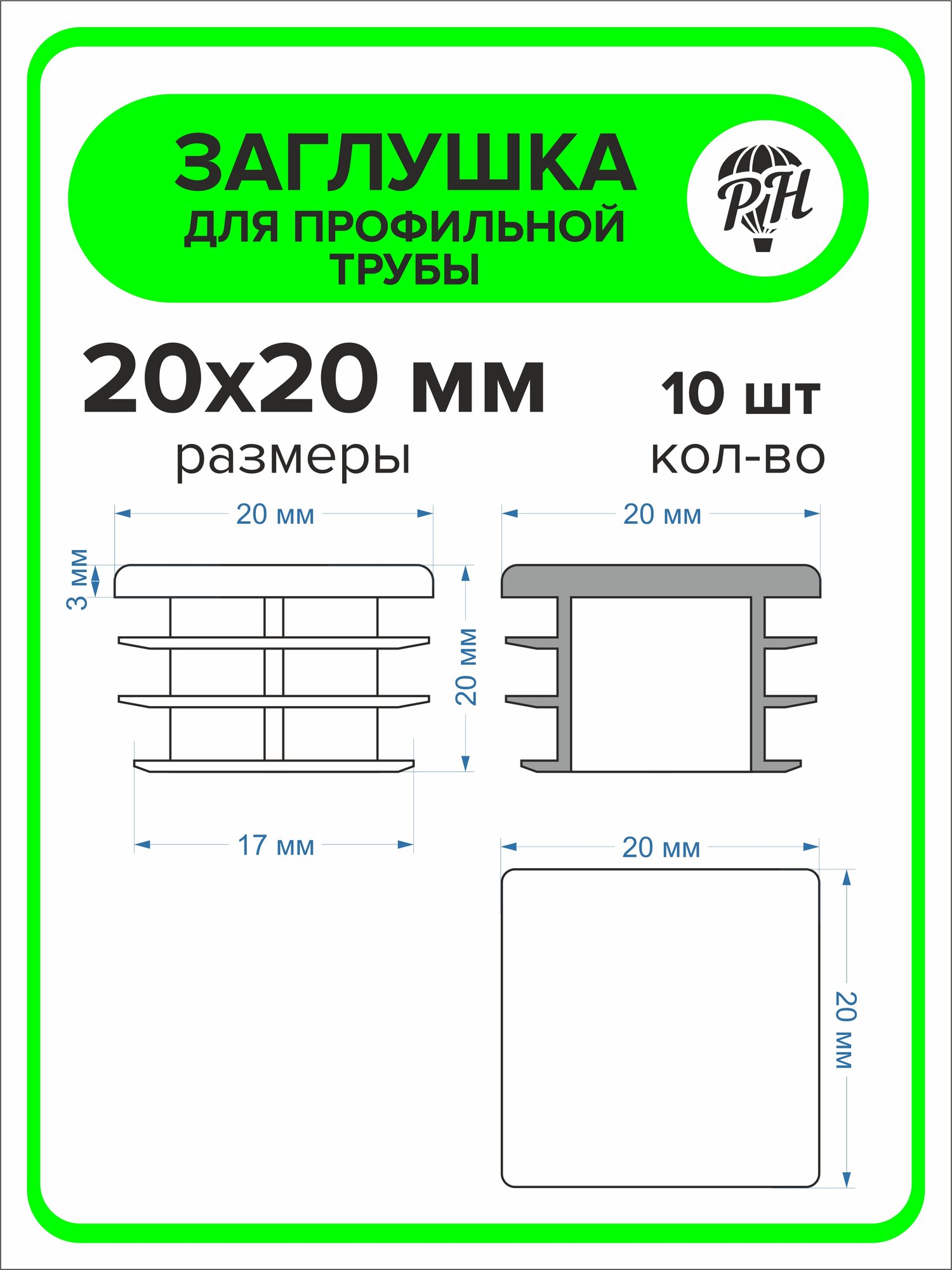 Заглушка для профильной трубы 20х20 мм, 16 штук 260 ₽