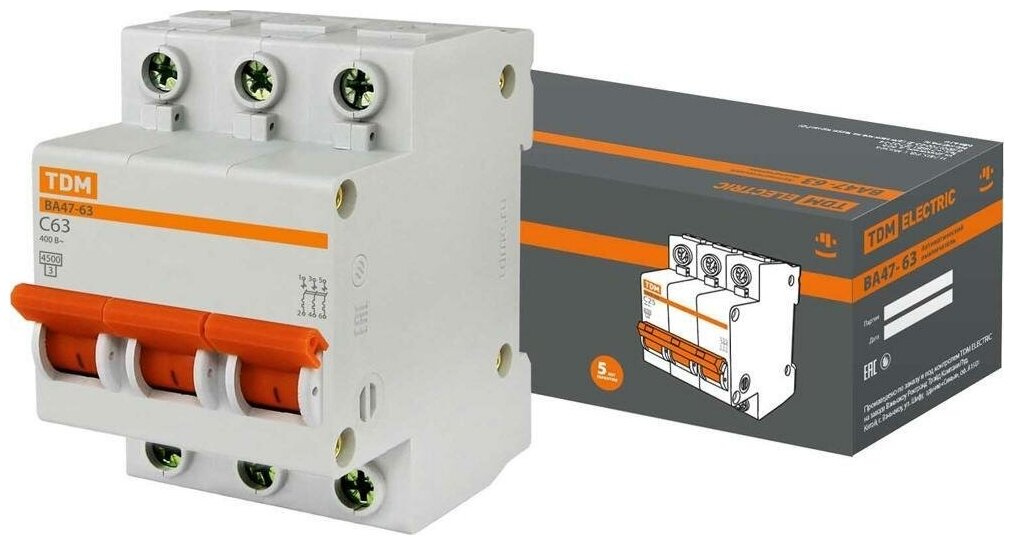 Автоматический выключатель TDM Electric ВА47-63 3P 63А характеристика С (комплект из 2 шт.)